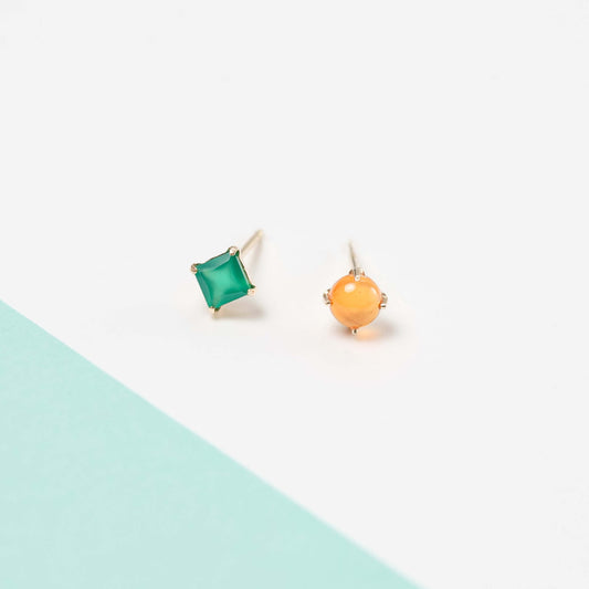 K10 アシンメトリー スタッドピアス(オレンジ アゲート / グリーン アゲート )
