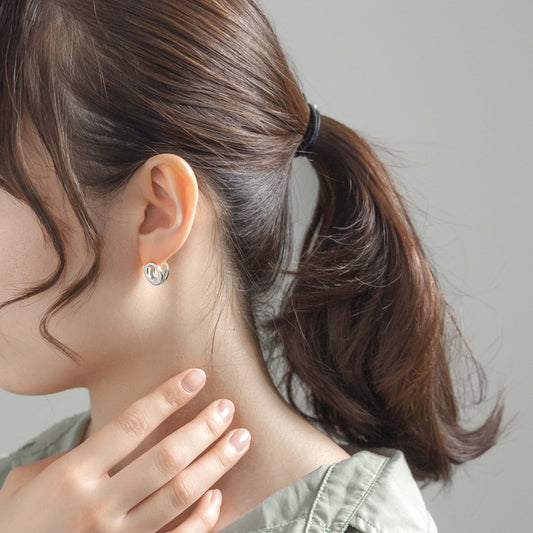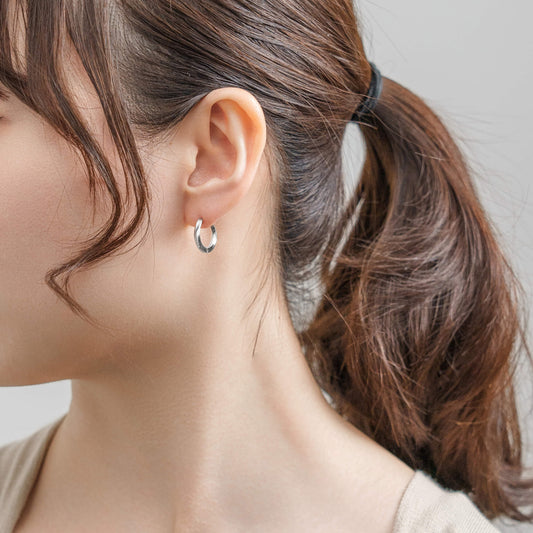 【片耳】SV925 地金 デザイン フープピアス(08-W/Y)