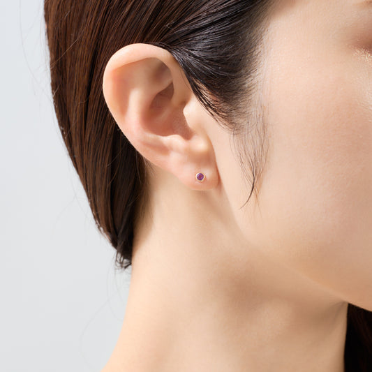 【片耳】K10 一粒 誕生石 サークル スタッドピアス (1月:ガーネット)