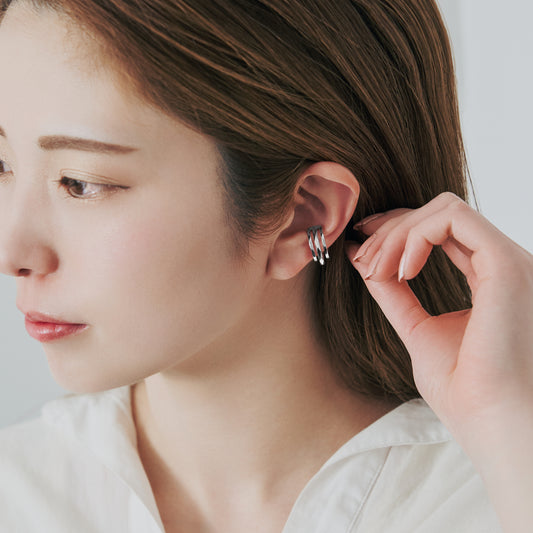 SV925 ユニセックス スリーライン イヤーカフ(W/Y/B)