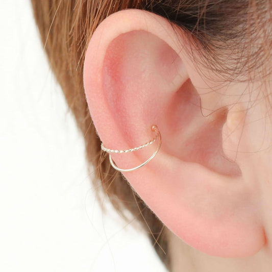 SV925 ユニセックス ダブルリング イヤーカフ(W/Y)