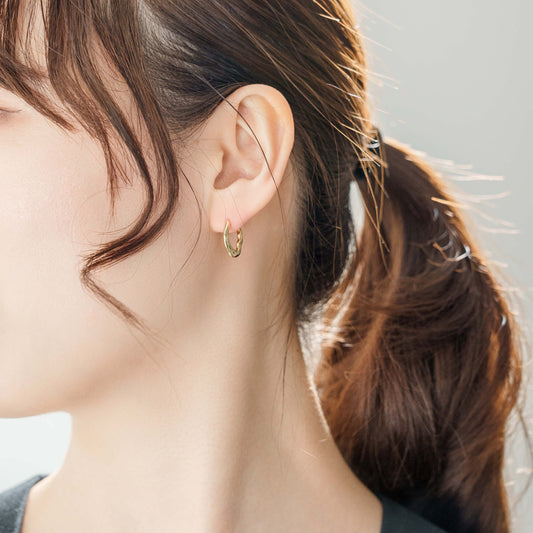 【片耳】SV925 地金 デザイン フープピアス(08-W/Y)