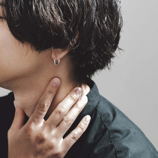 【片耳】SV925 地金 デザイン フープピアス(07-W/Y)