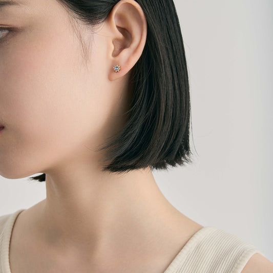 K18 誕生石×ダイヤモンド スタッドピアス (3月:アクアマリン)
