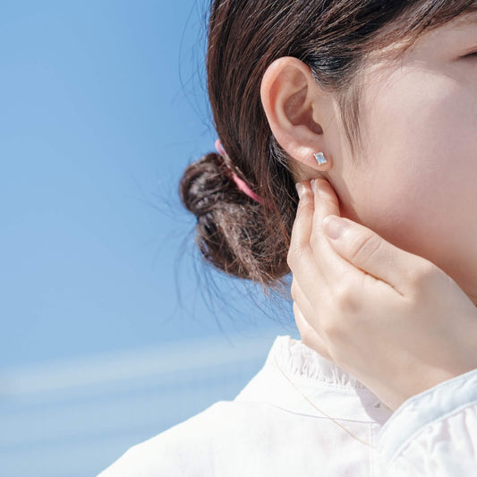 K10 誕生石 6×4 oct スタッドピアス (3月:アクアマリン)
