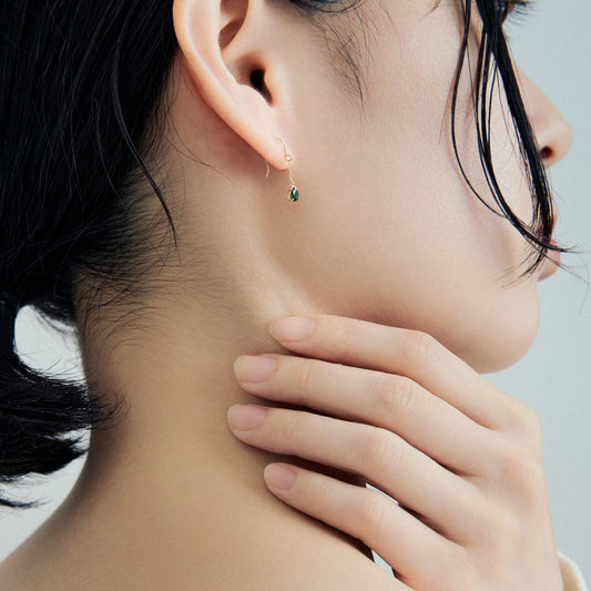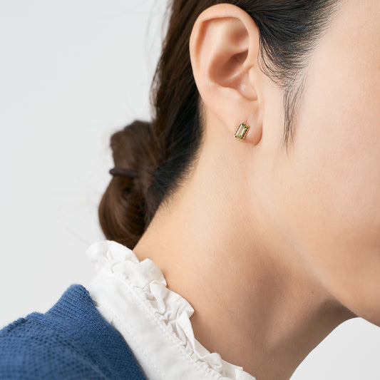 K10 つや消し スクエア ピアス - ① (ペリドット)
