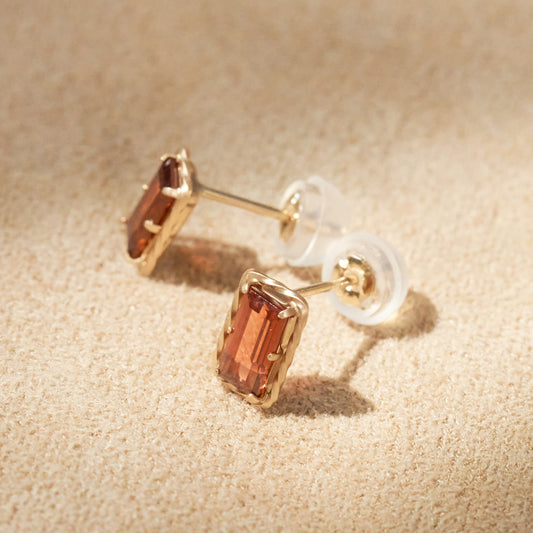 K10 つや消し スクエア ピアス - ①(ガーネット)