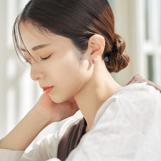 K10 つや消し スクエア ピアス - ➁(アメジスト)