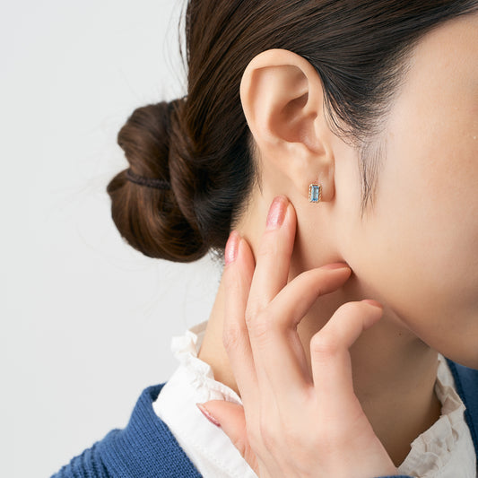 K10 つや消し スクエア ピアス - ① (ブルートパーズ)