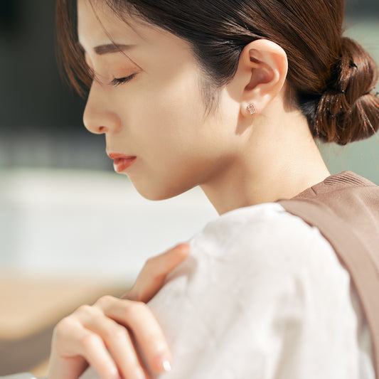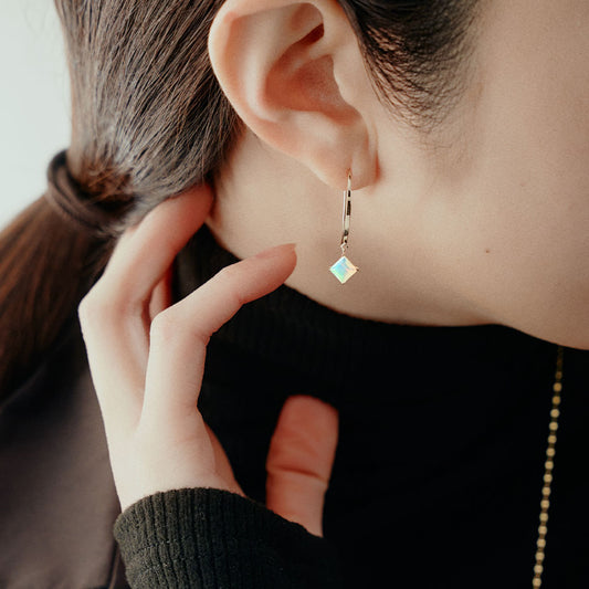 K10 つや消し スクエア ピアス - ➁(ホワイトトパーズ)