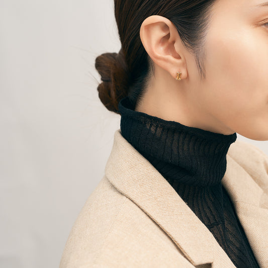 K10 ゴールデンルチルクォーツ ムーン ピアス(02)