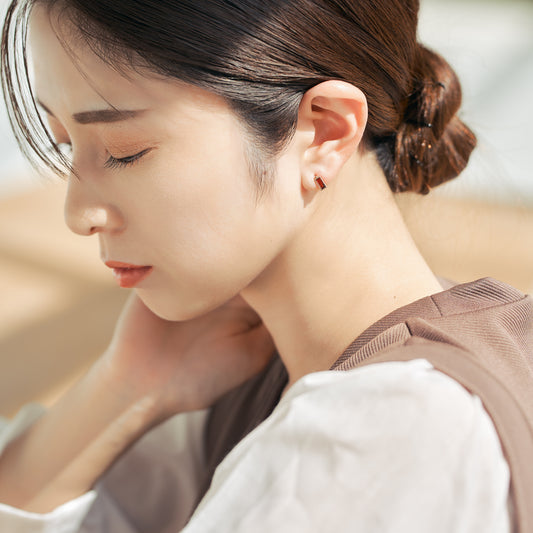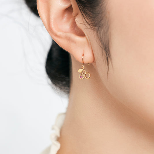 K10 つや消し スクエア ピアス - ➁(ガーネット)