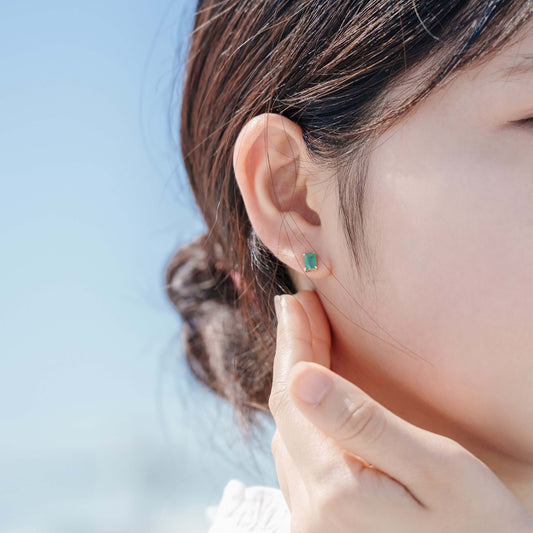 K10 誕生石 6×4 oct スタッドピアス (5月:エメラルド)