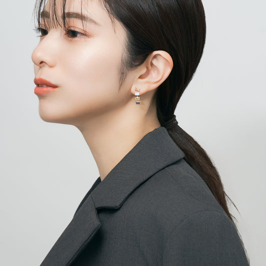 K10 つや消し スクエア ピアス - ➁(シトリン)