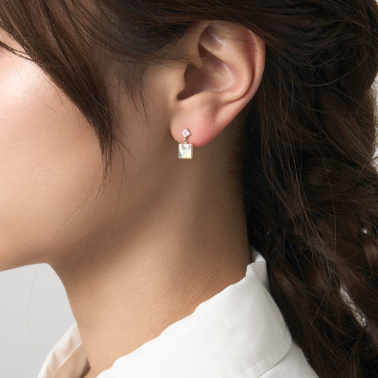 K10 ホワイトシェル × ホワイトトパーズ( スクエア )スタッドピアス