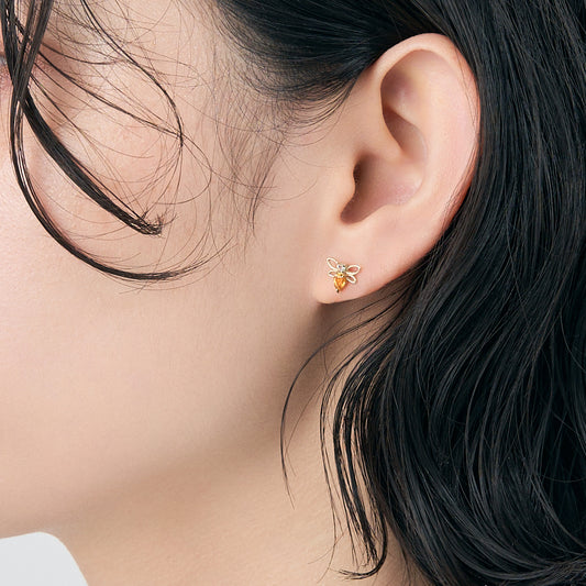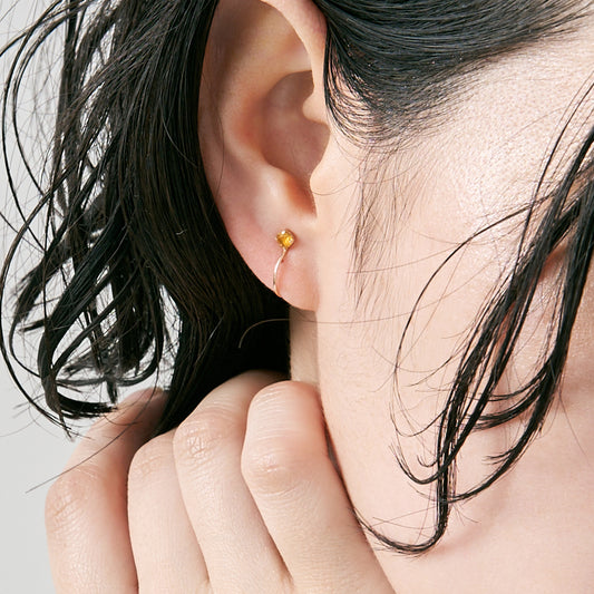 K18 誕生石×ダイヤモンド スタッドピアス (11月:シトリン)