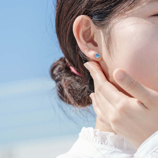K10 誕生石 6×4 oct スタッドピアス (11月:ブルートパーズ)