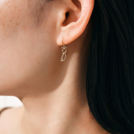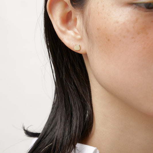 K10 ネコモチーフ アコヤパール スタッドピアス