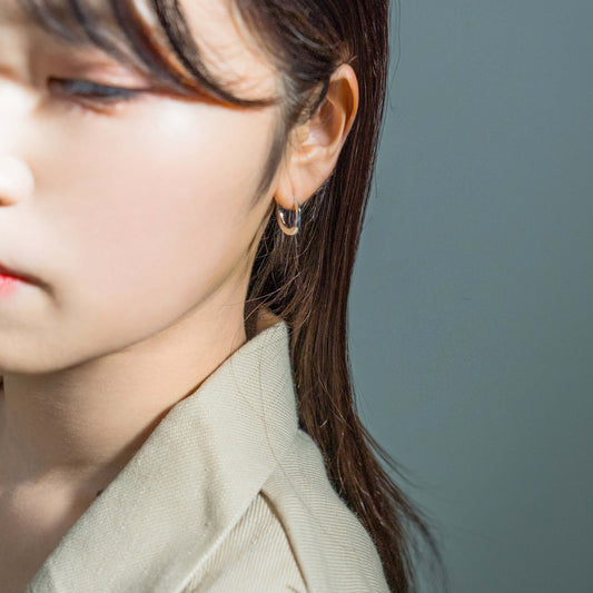 【片耳】SV925 地金 デザイン フープピアス(05-W/Y)