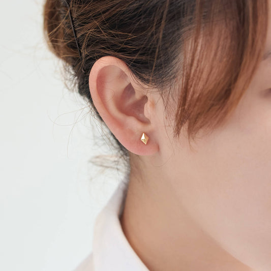 【片耳】K18 地金 中空 スタッドピアス(ひし形)