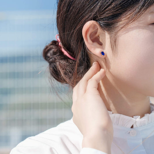 K10 誕生石 6×4 oct スタッドピアス (9月:サファイア)