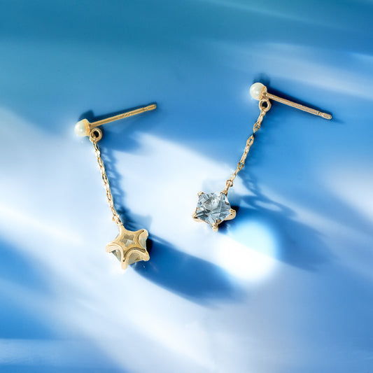 K10 星 チェーン ピアス(スカイブルートパーズ)