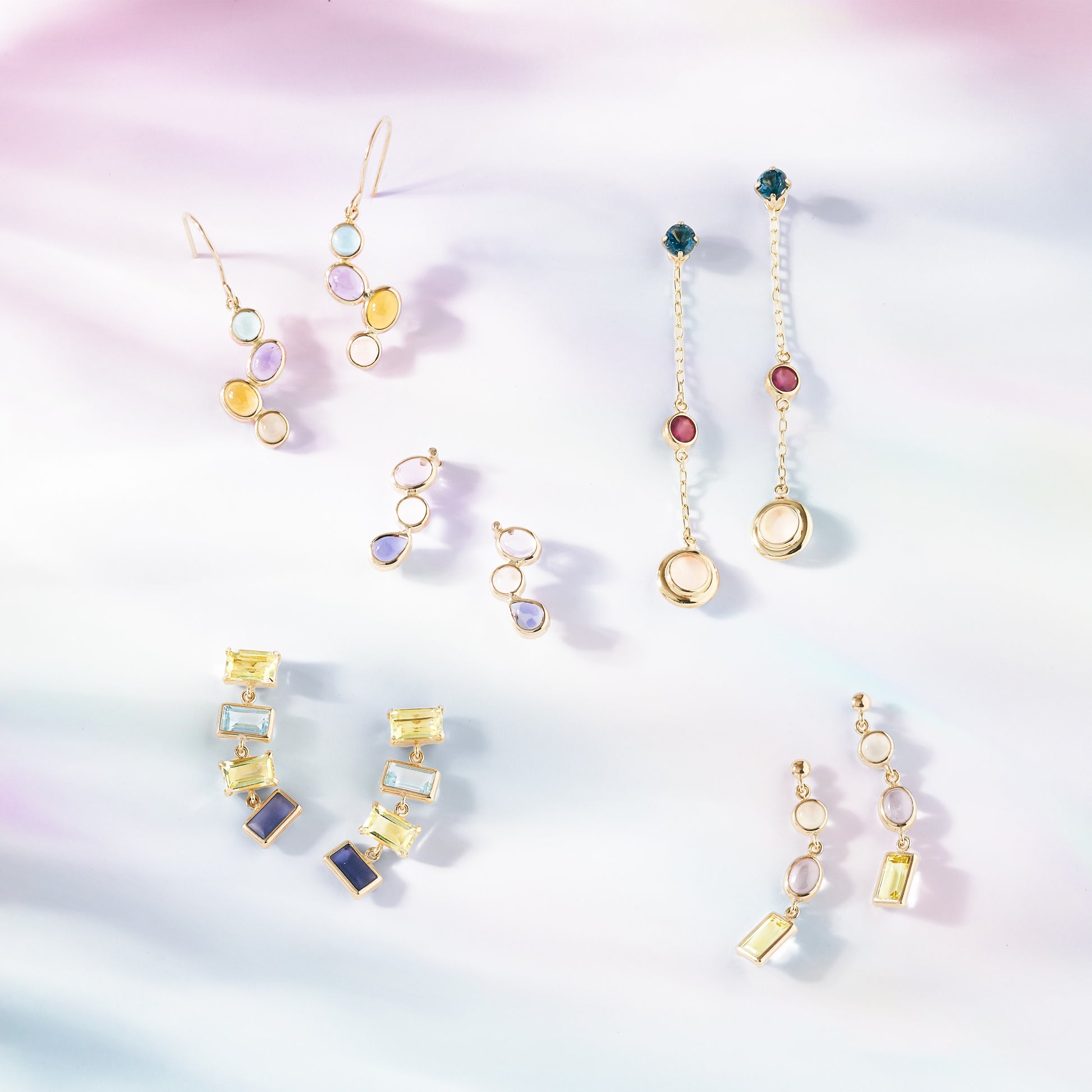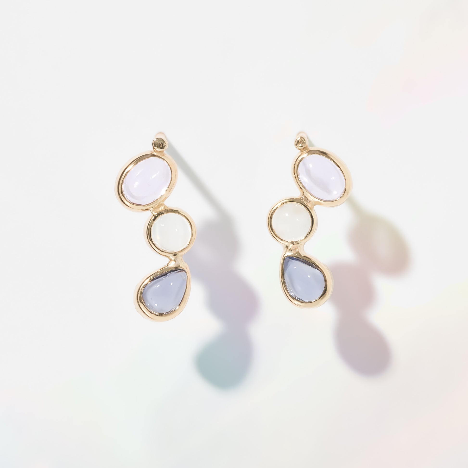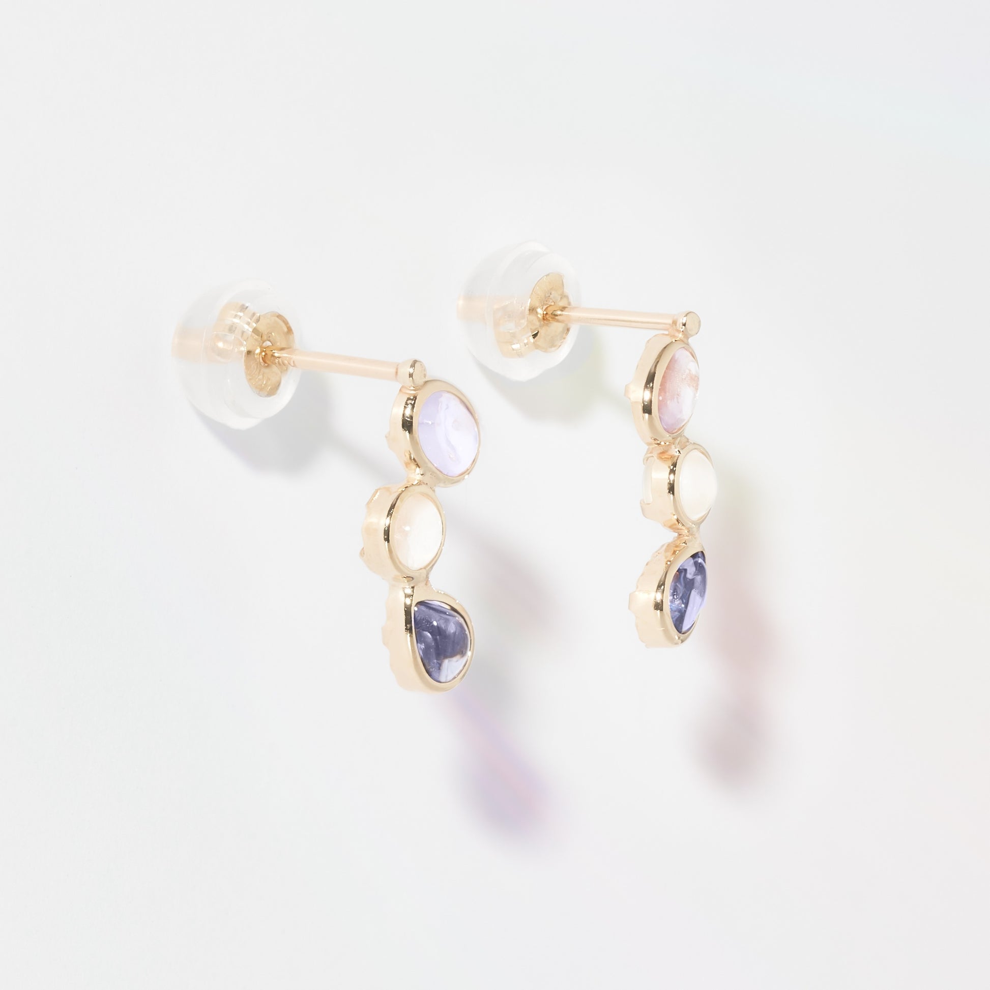 形の違う3種類の淡い色のカラーストーンを使用したスタッドピアス。