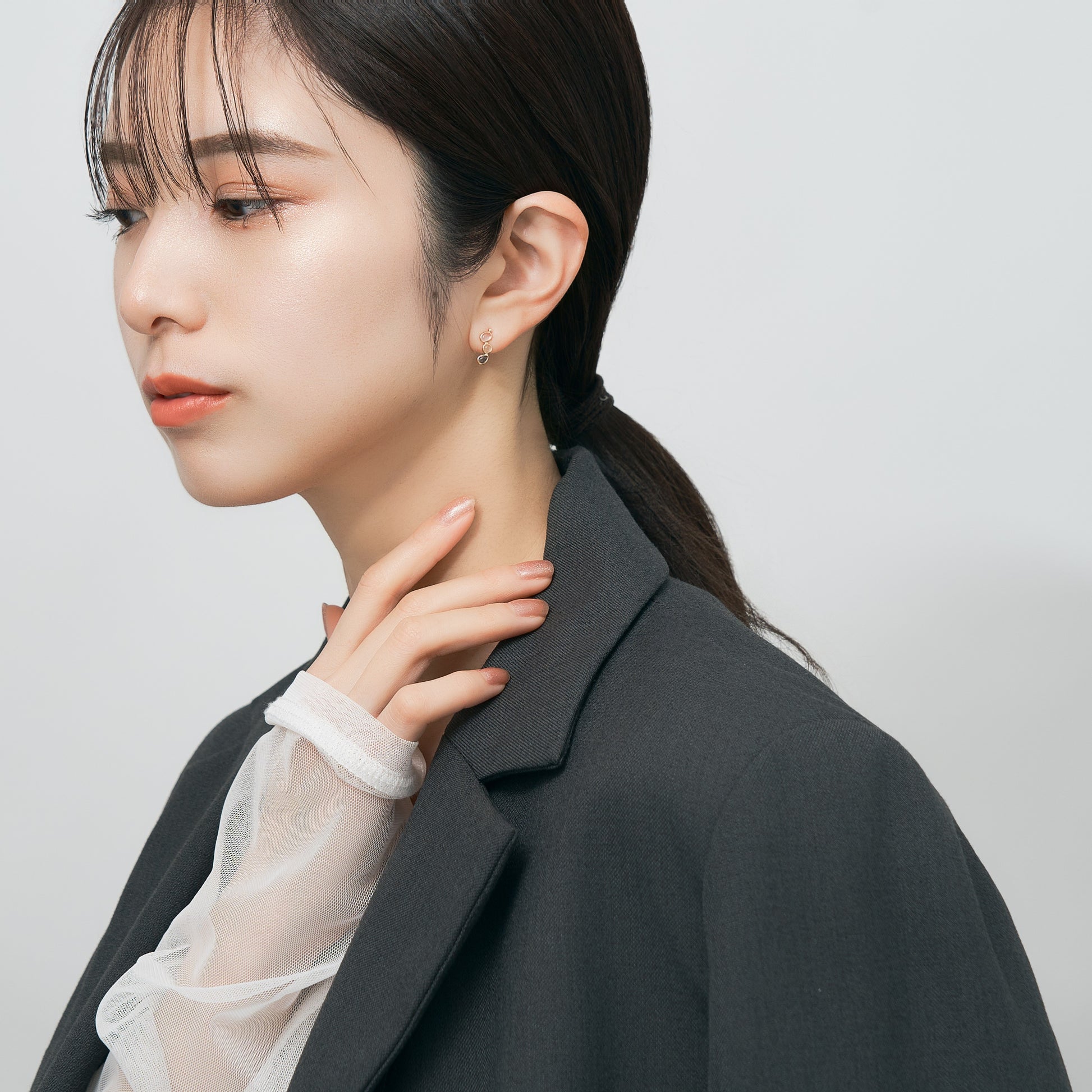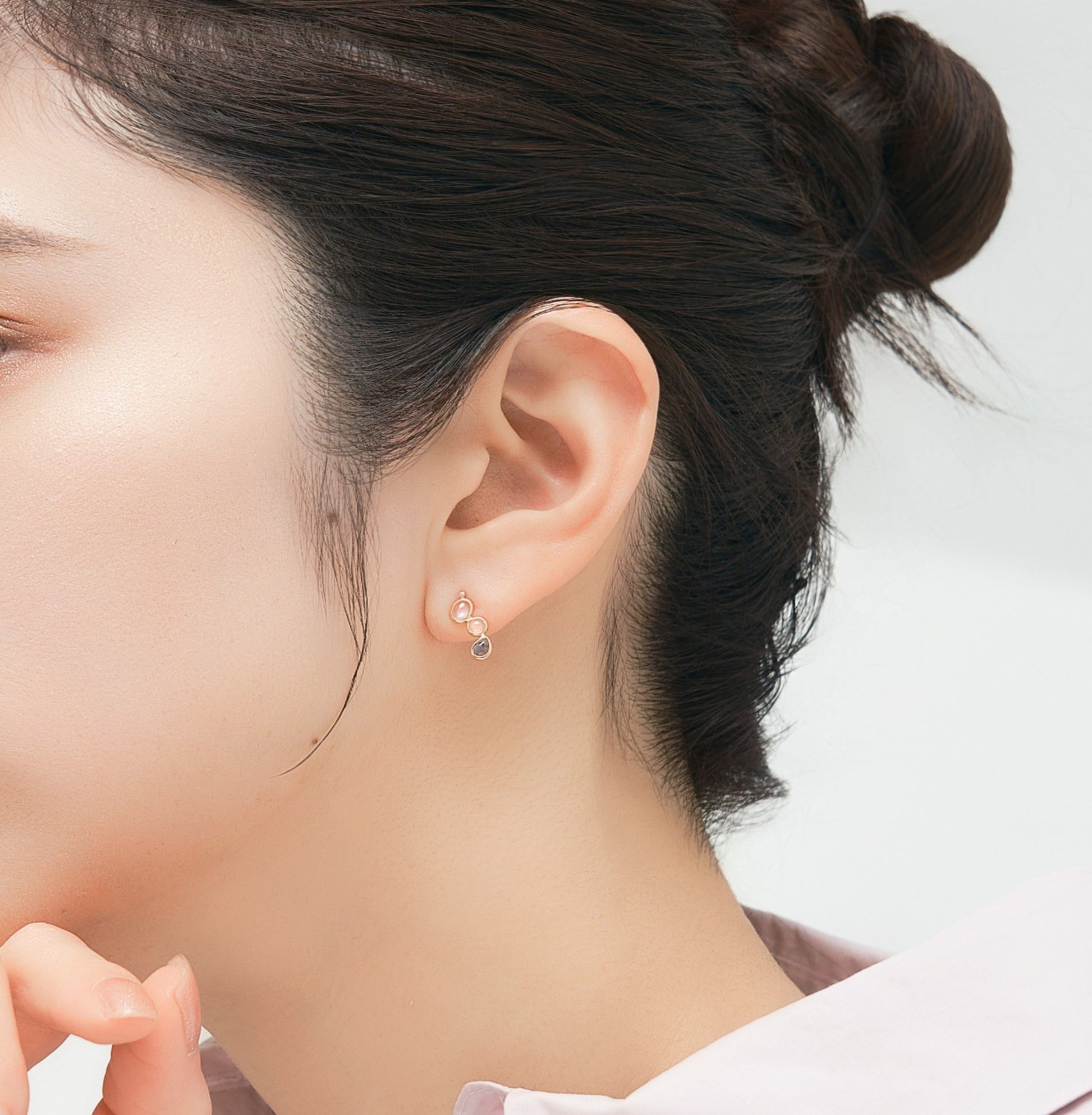 淡い色のカラーストーンは顔周りを明るく、柔らかい印象にしてくれます。