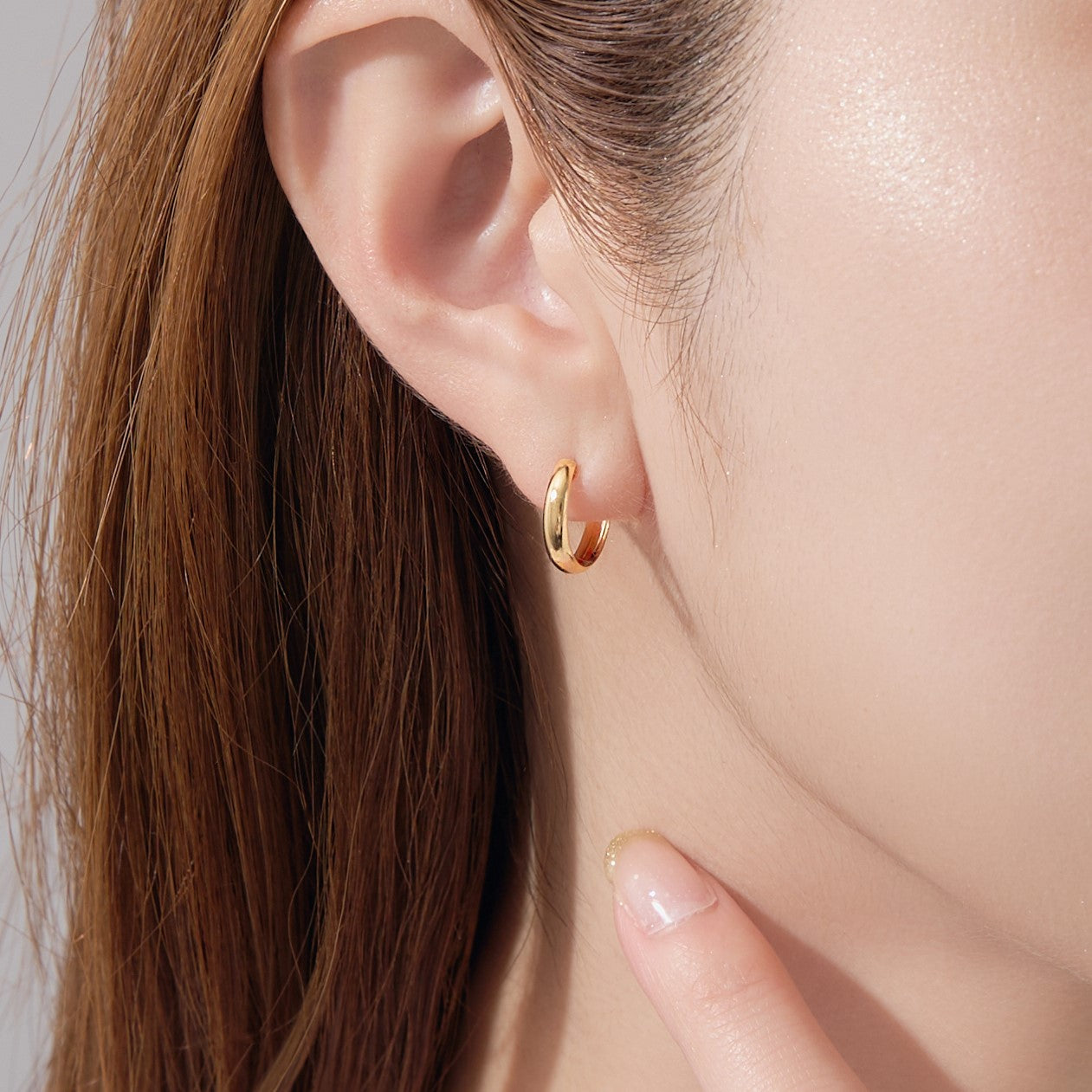 月甲丸でボリュームのあるピアスは、コーデの主役級の存在感。