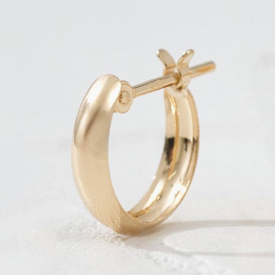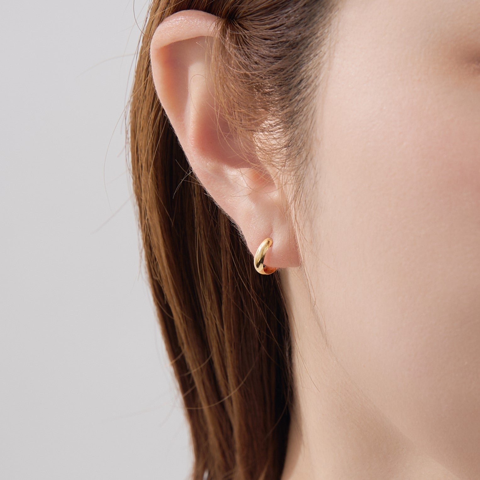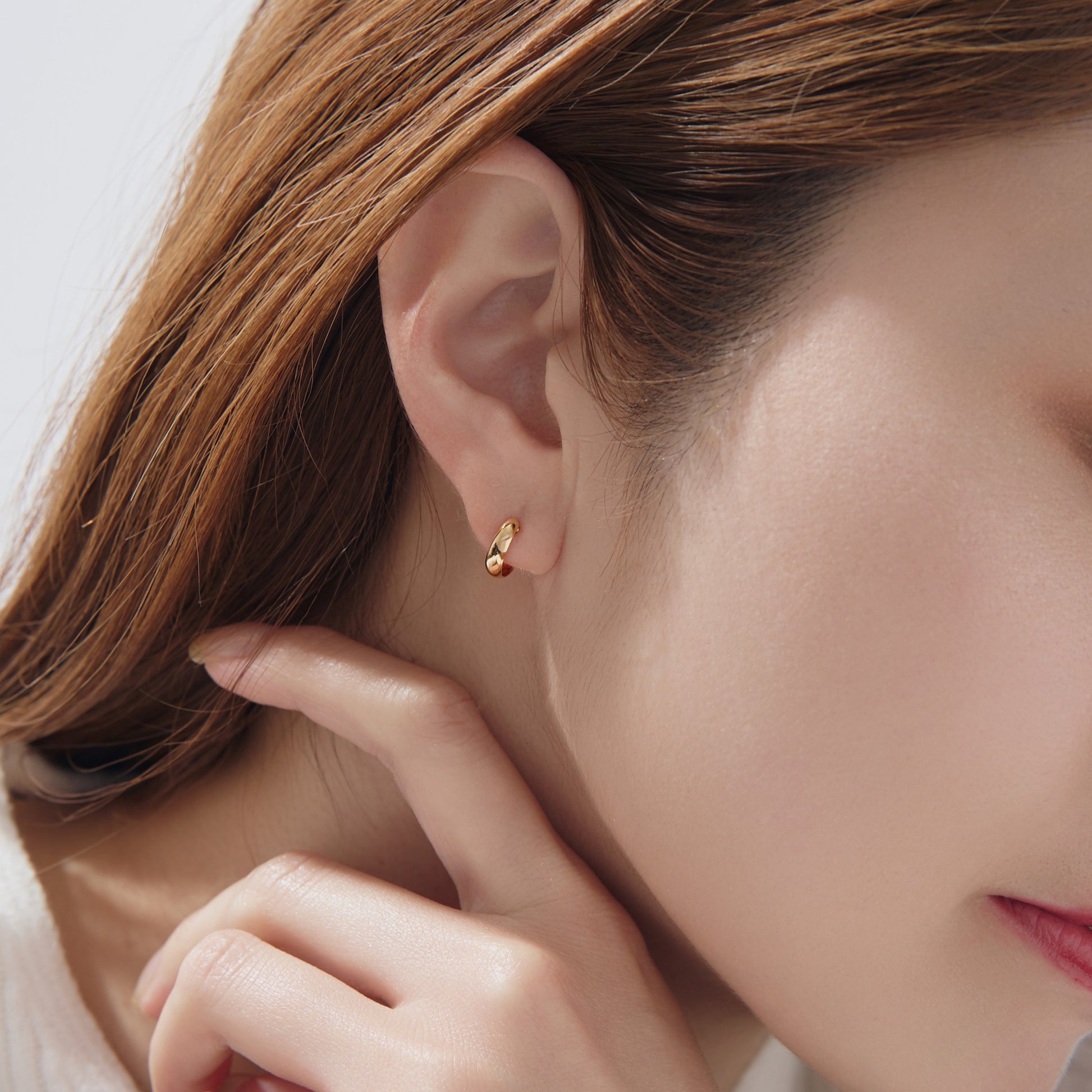 月甲丸でボリュームのあるピアスは、コーデの主役級の存在感。