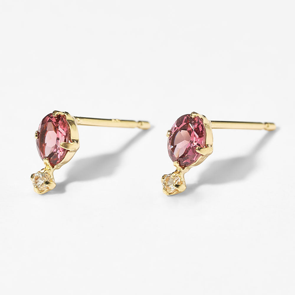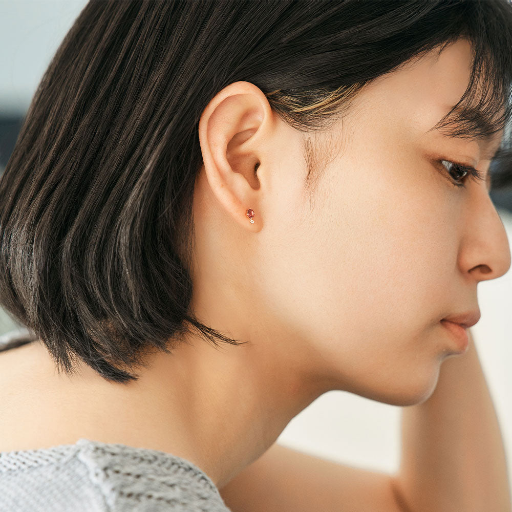 やさしいローズブラウンがかったマラヤガーネットに、澄んだ輝きのホワイトトパーズを添えたスタッドピアス。