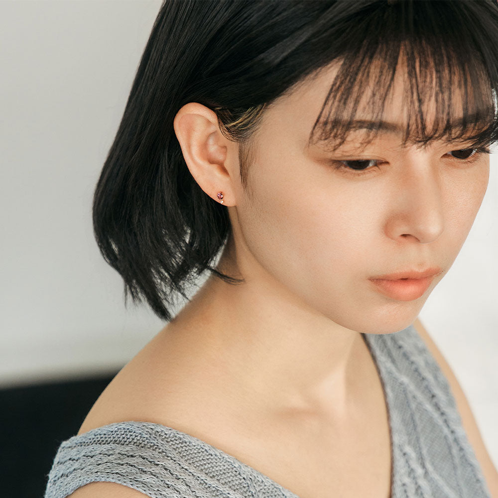 控えめなサイズ感と、肌なじみの良いナチュラルトーンで、日常にすっとなじむ落ち着いた華やかさを演出します。耳元にそっと光を添えるようなデザインは、気負わず楽しめる大人のアクセサリーとしてぴったり。
