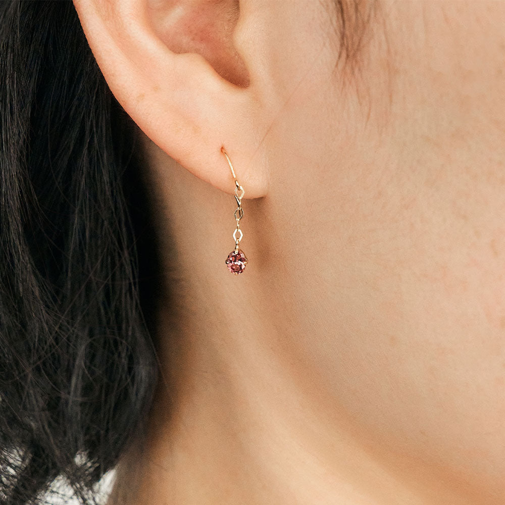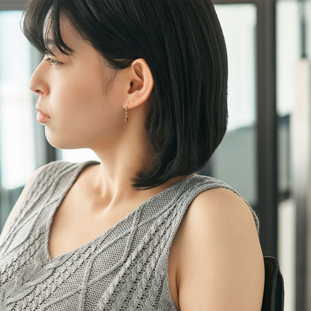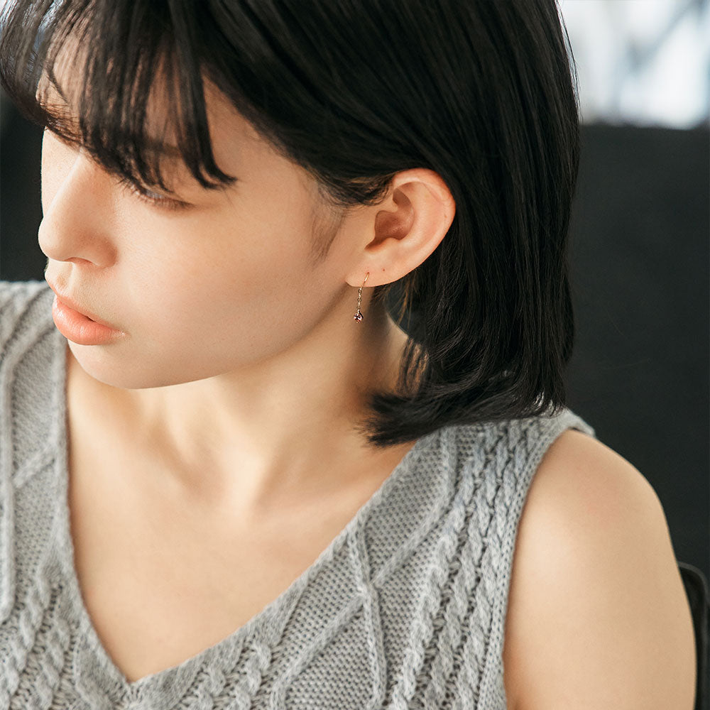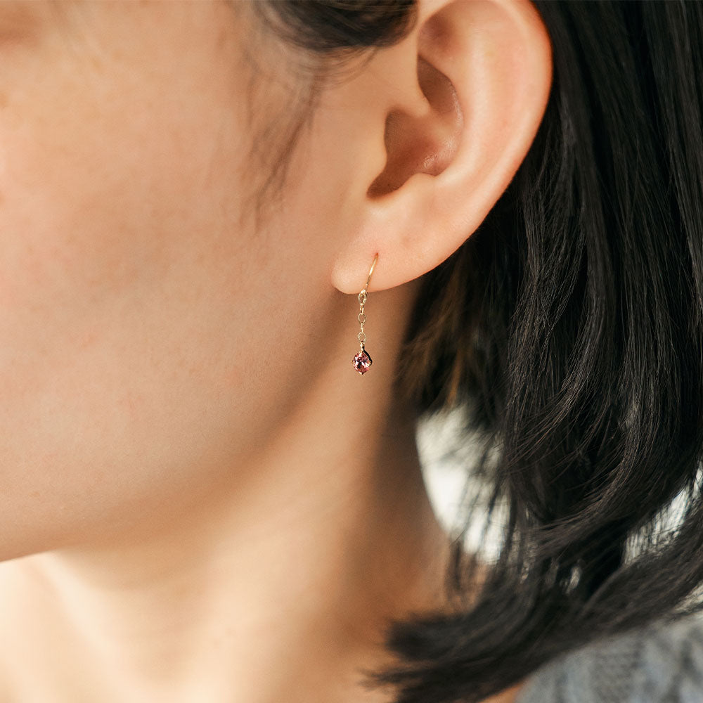 ほんのりローズがかった、上品な色合いが魅力のマラヤガーネットを使用したフックピアス。