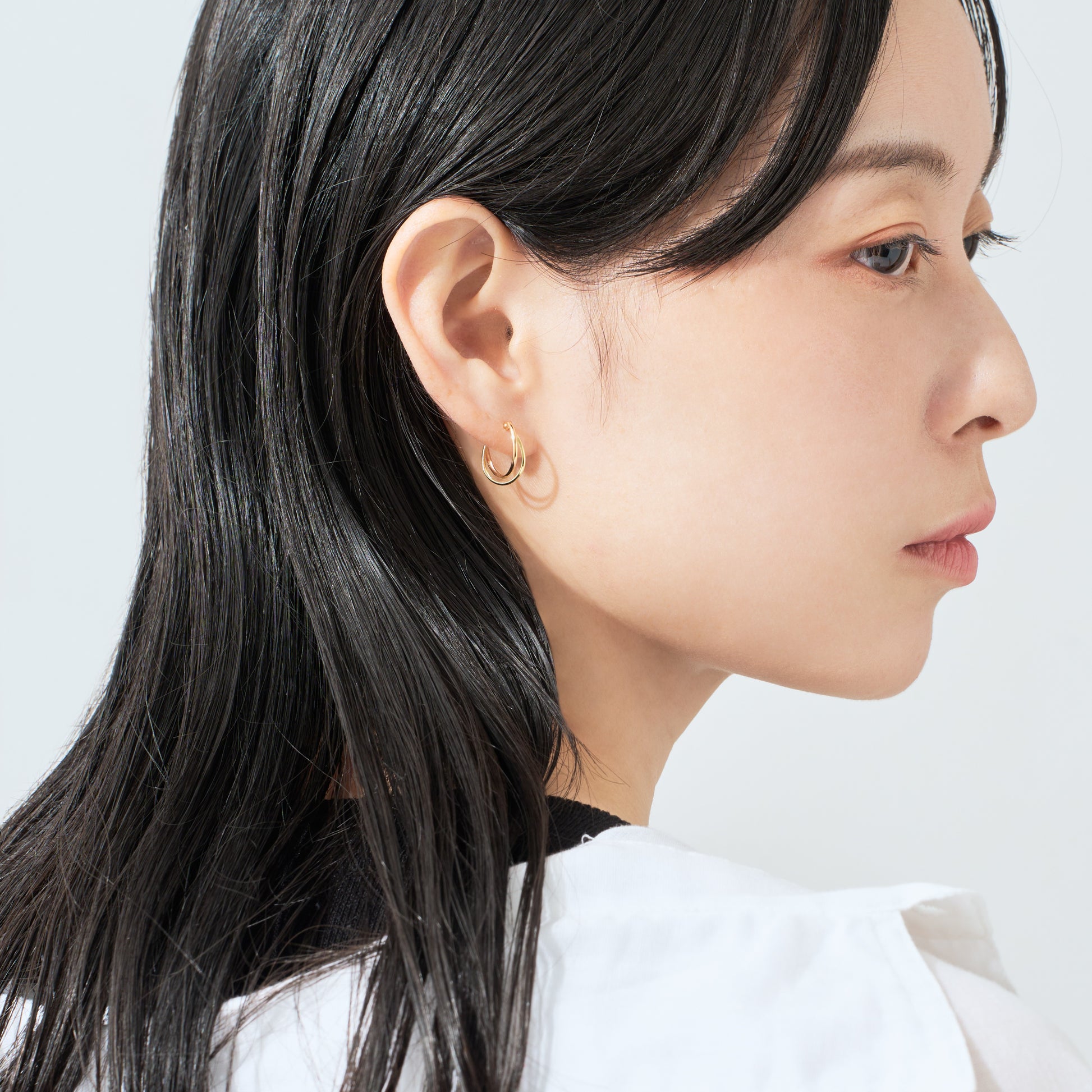 シンプルなフォルムの中に、繊細な色のコントラストを秘めたデザインは、見る角度や光の当たり方によってさりげなく表情を変え、耳元に程よい華やかさをプラスしてくれます。
