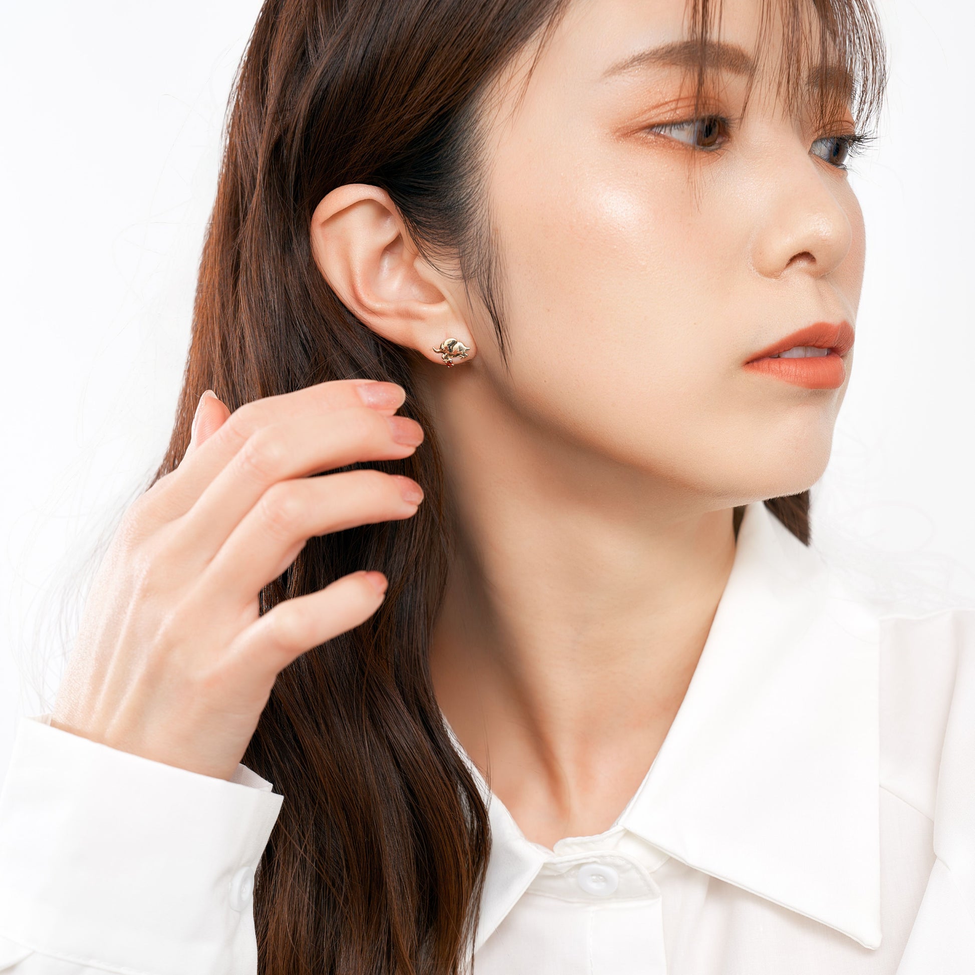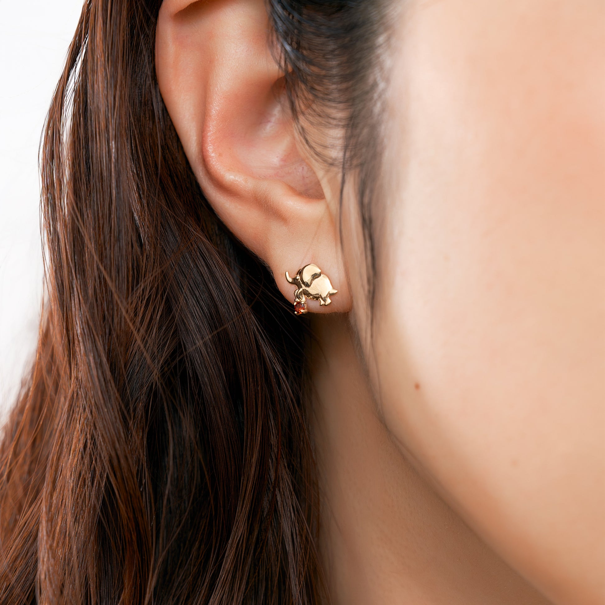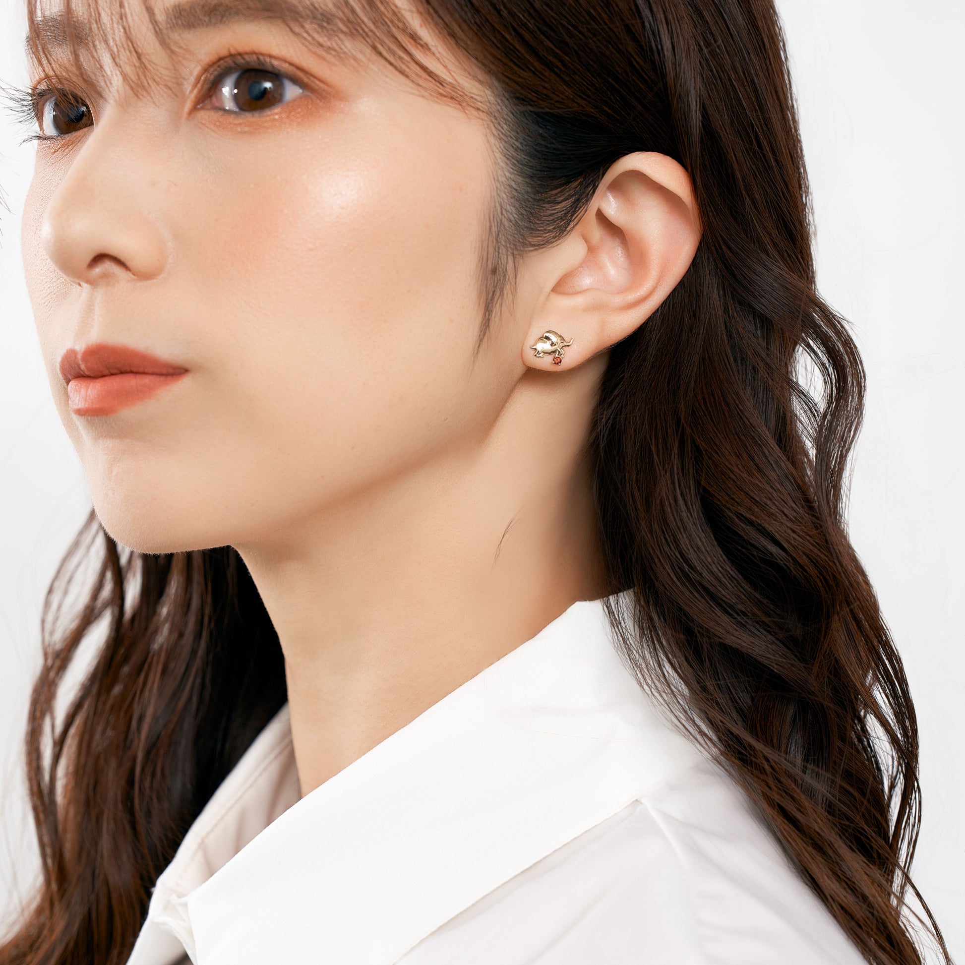 柔らかな表情が、身につける人の心を穏やかにしてくれるゾウモチーフのピアス。