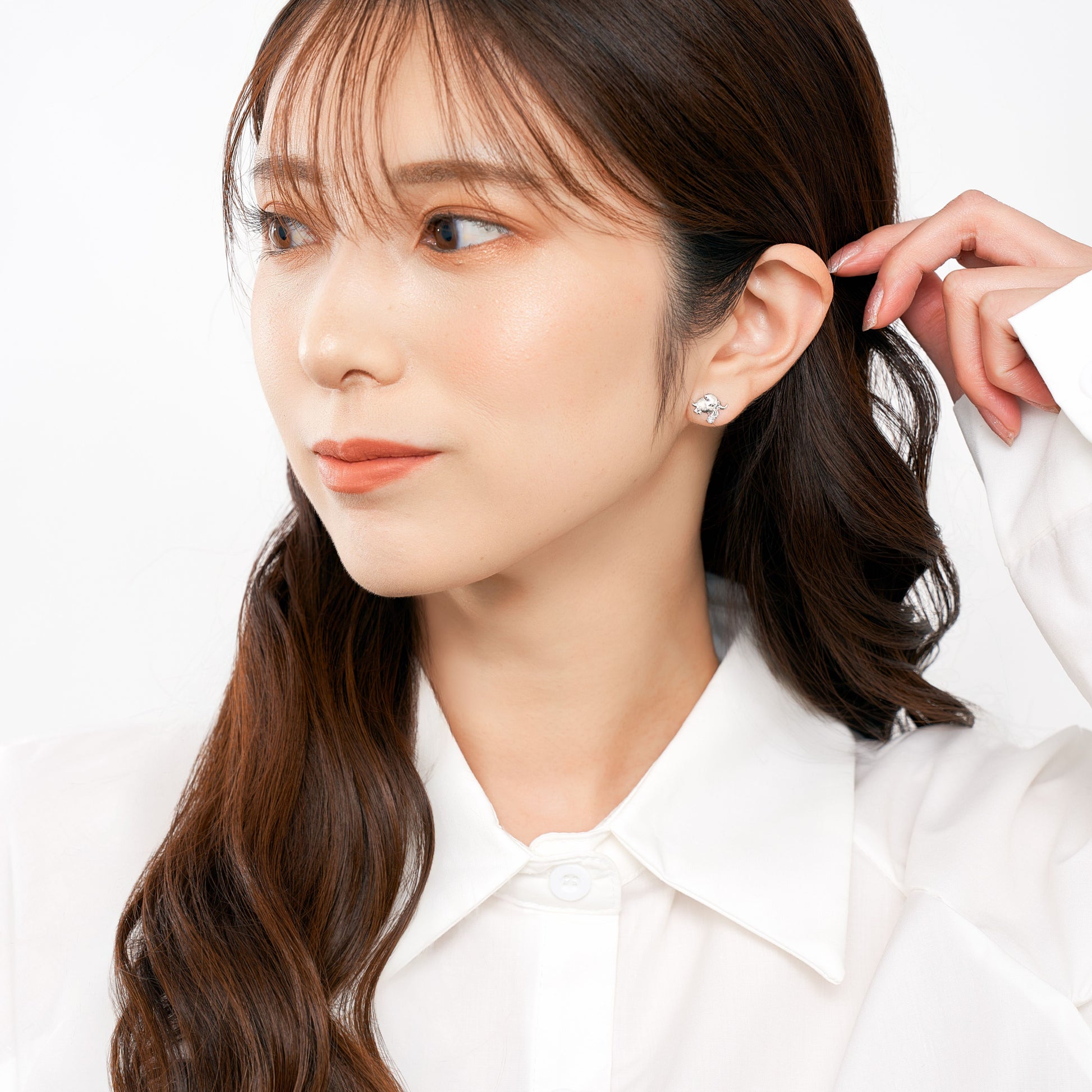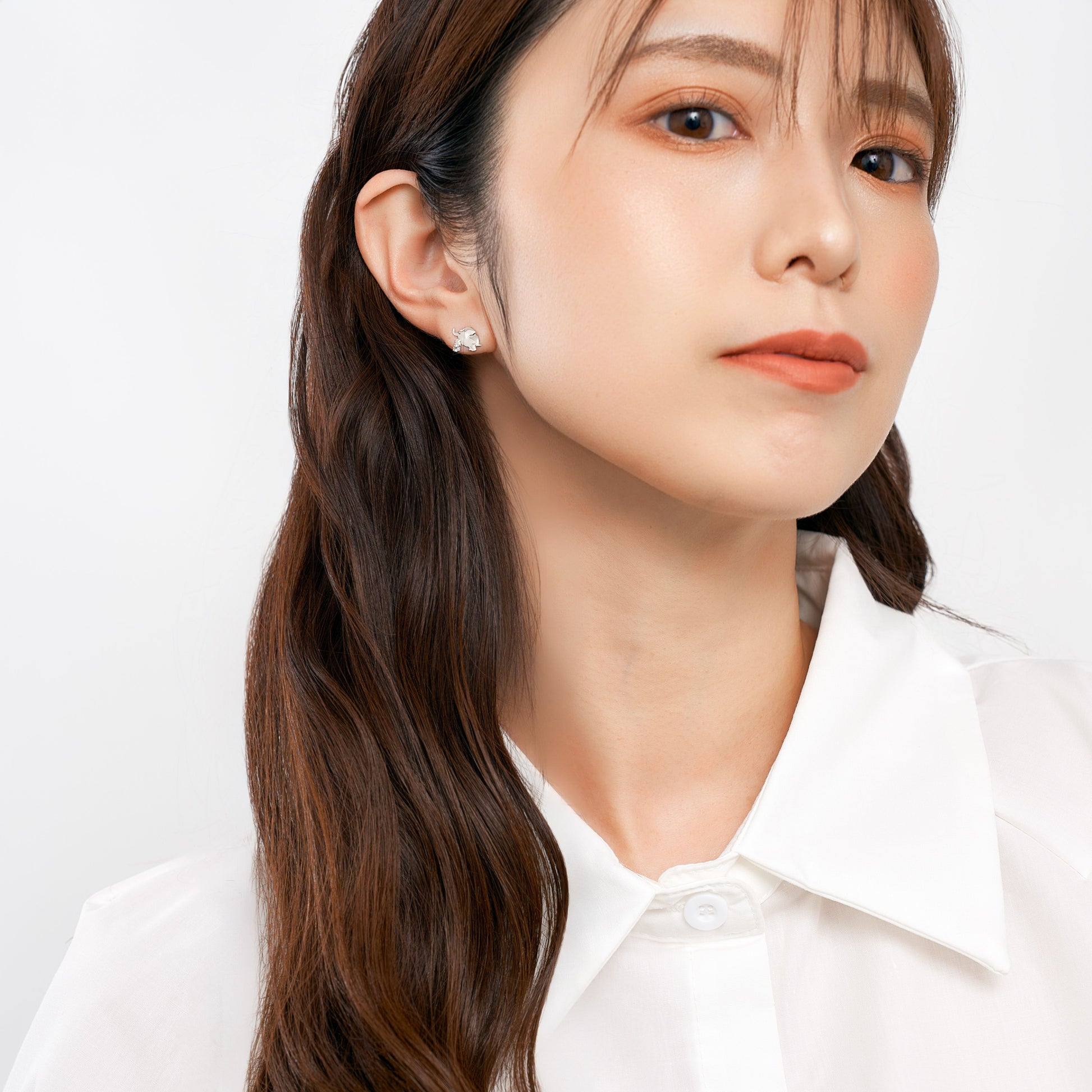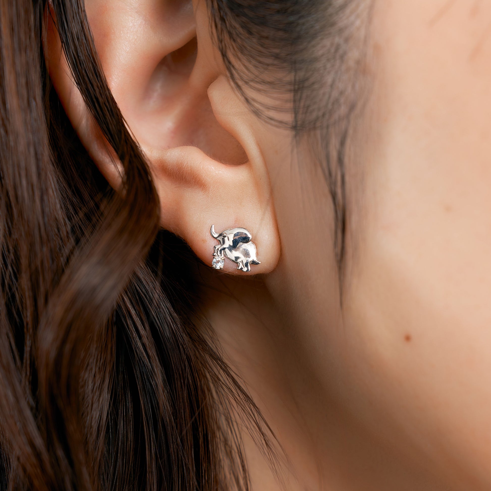 柔らかな表情が、身につける人の心を穏やかにしてくれるゾウモチーフのピアス。