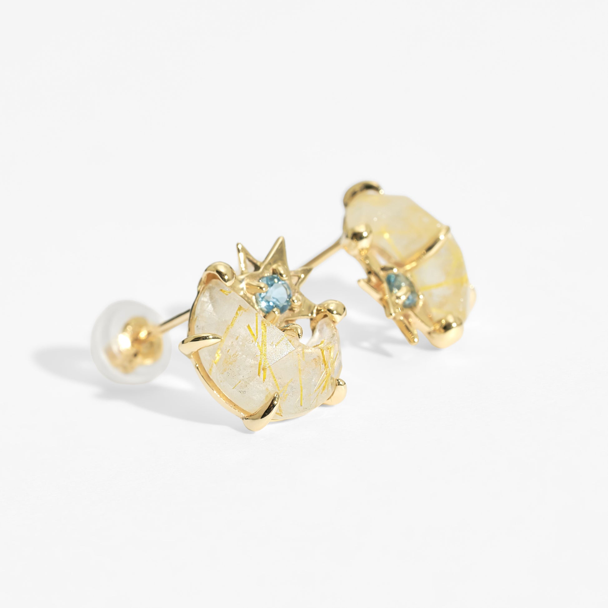 K10 ゴールデンルチルクォーツ ムーン ピアス(03)