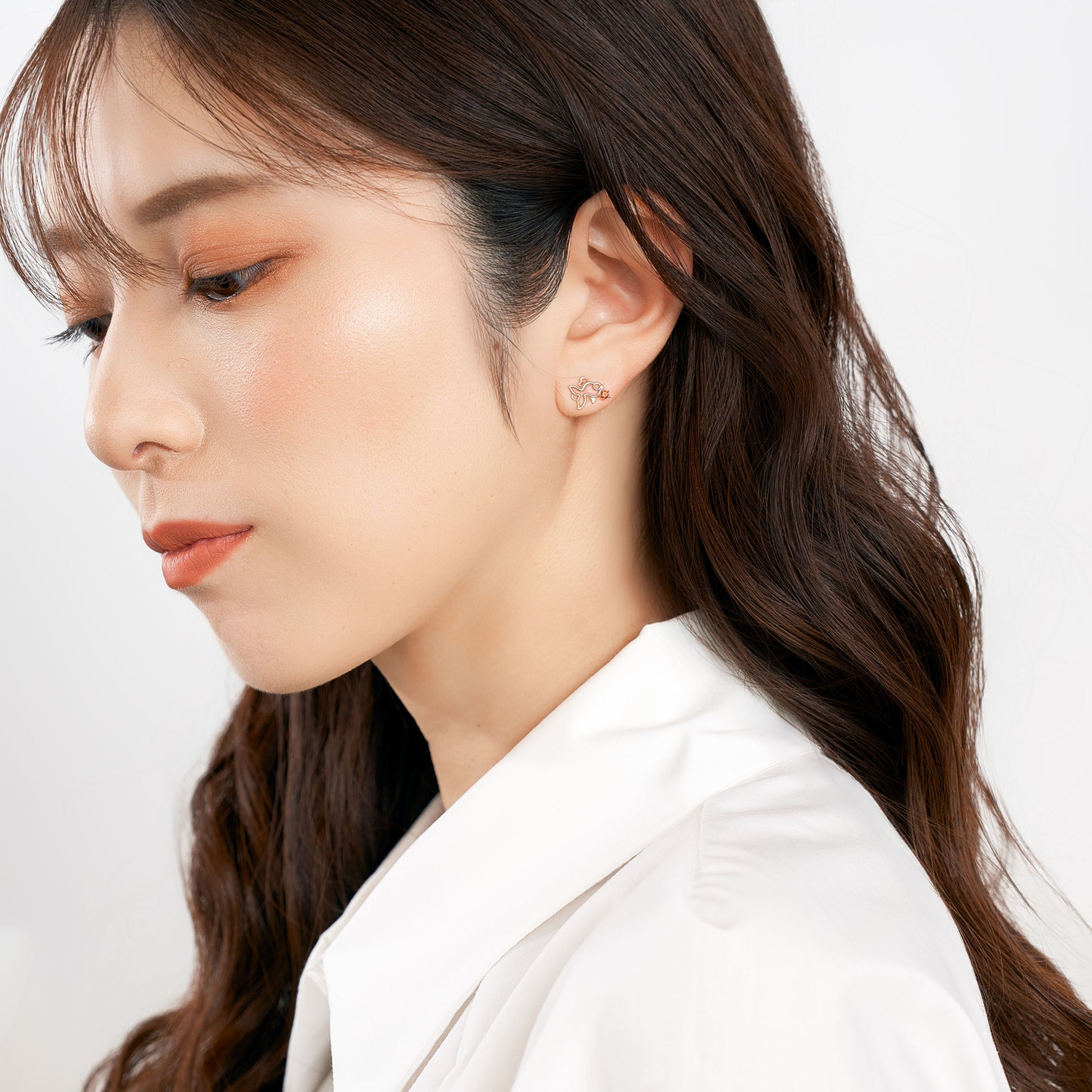 深みあるガーネットがさりげなく輝き、甘すぎない大人の可愛らしさを演出します。