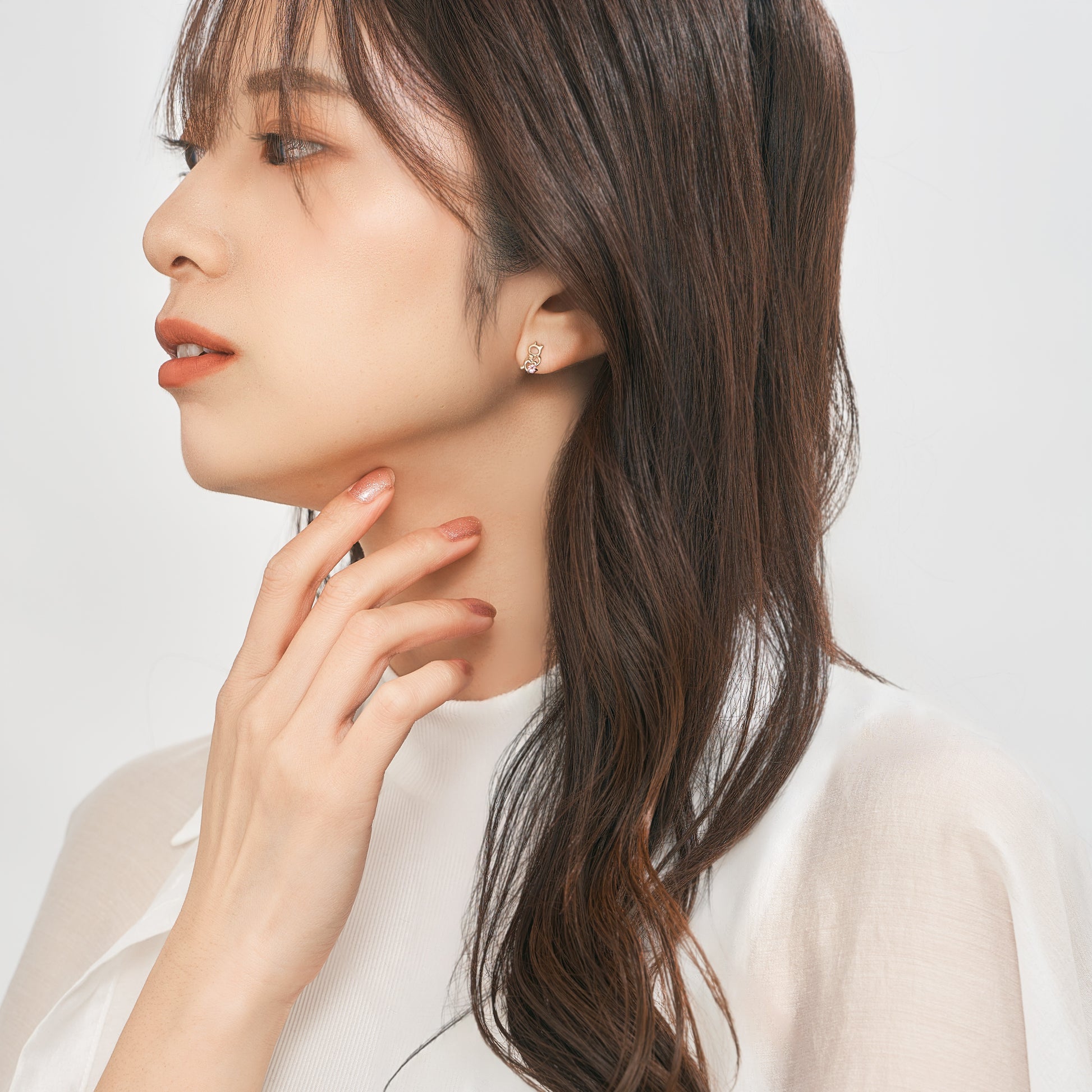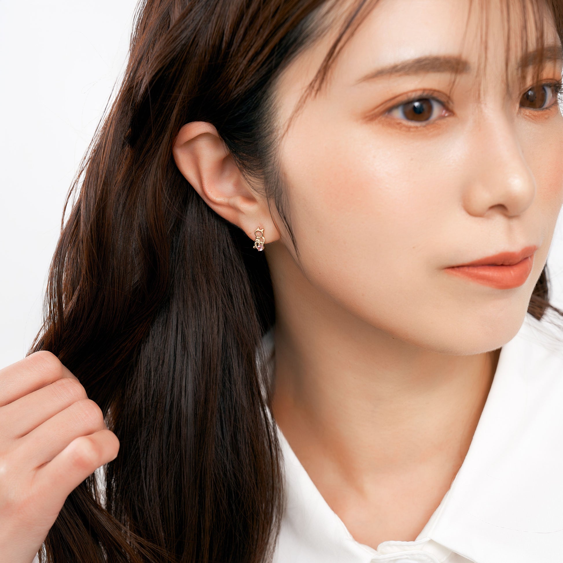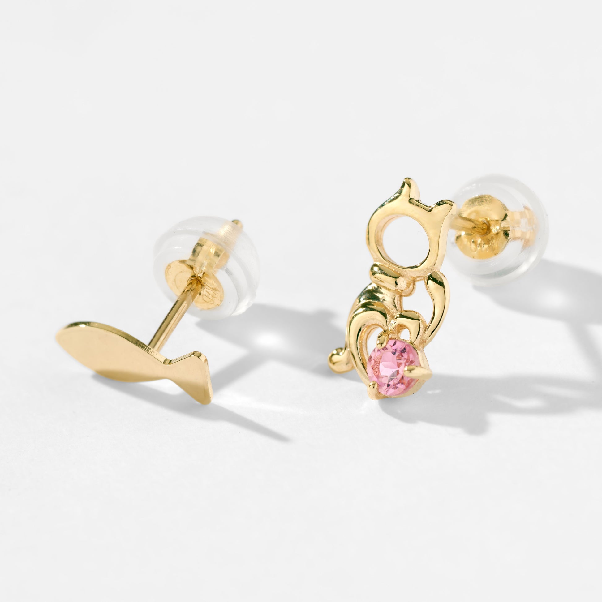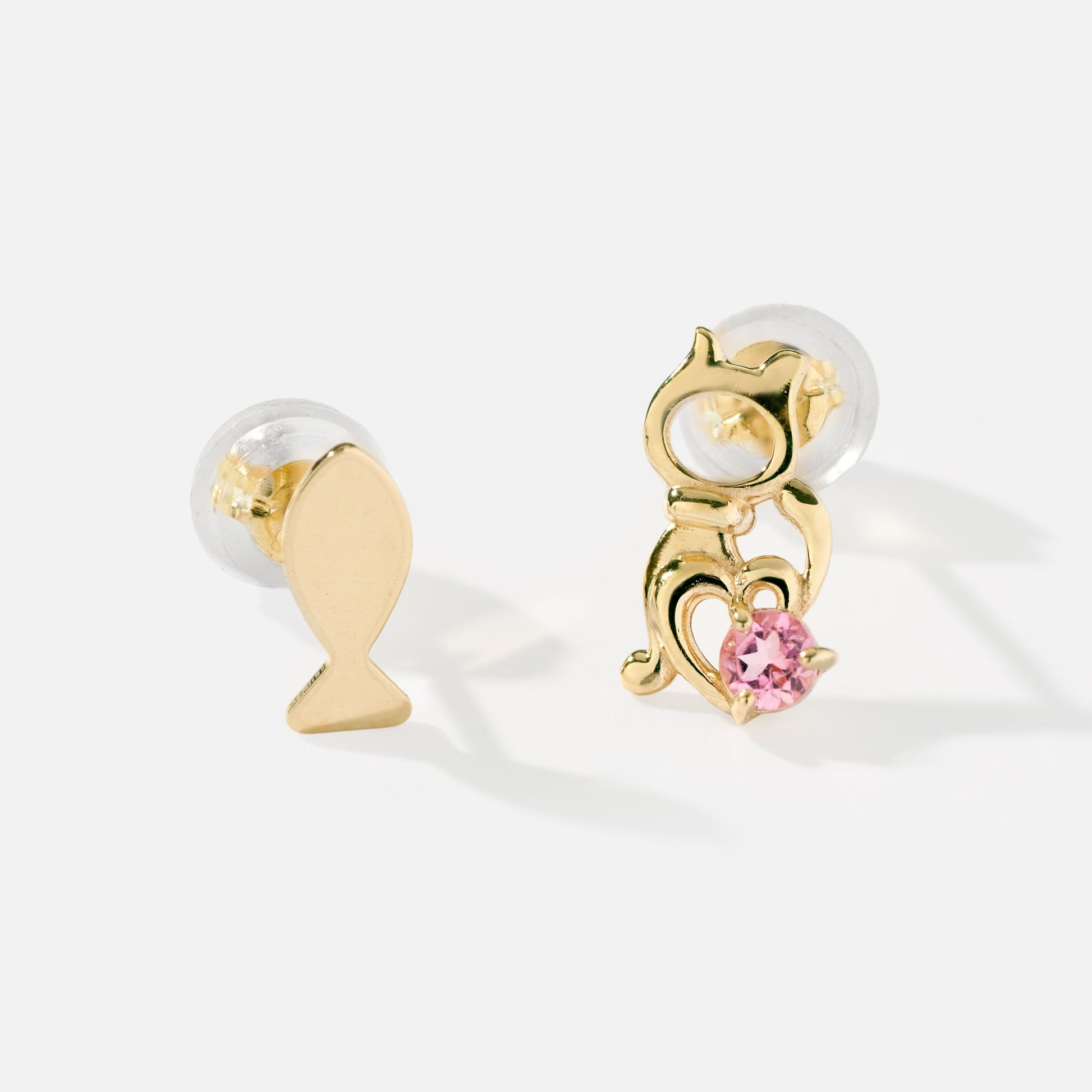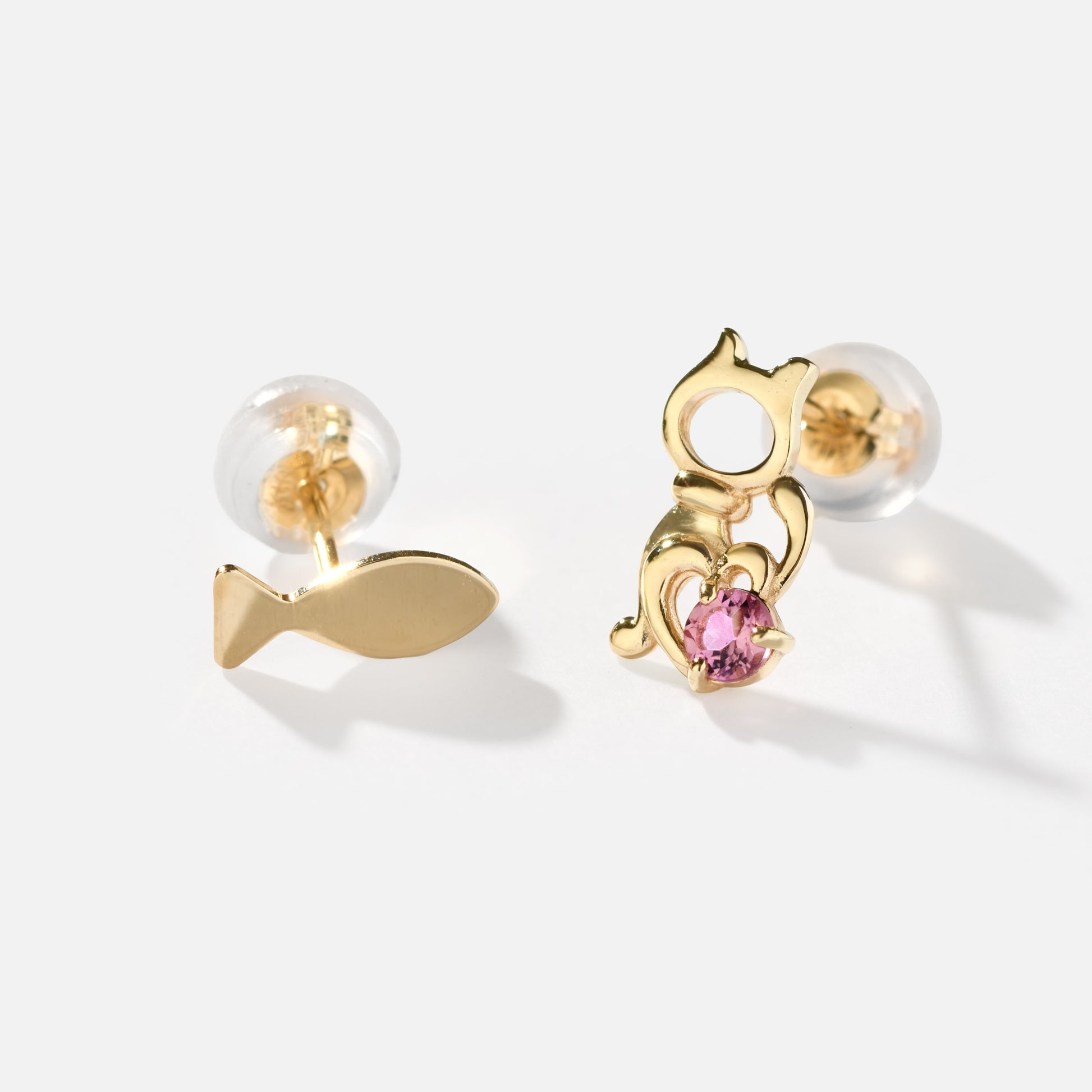 遊び心のある猫と魚のモチーフを、繊細なシルエットで表現したアシンメトリーピアス。