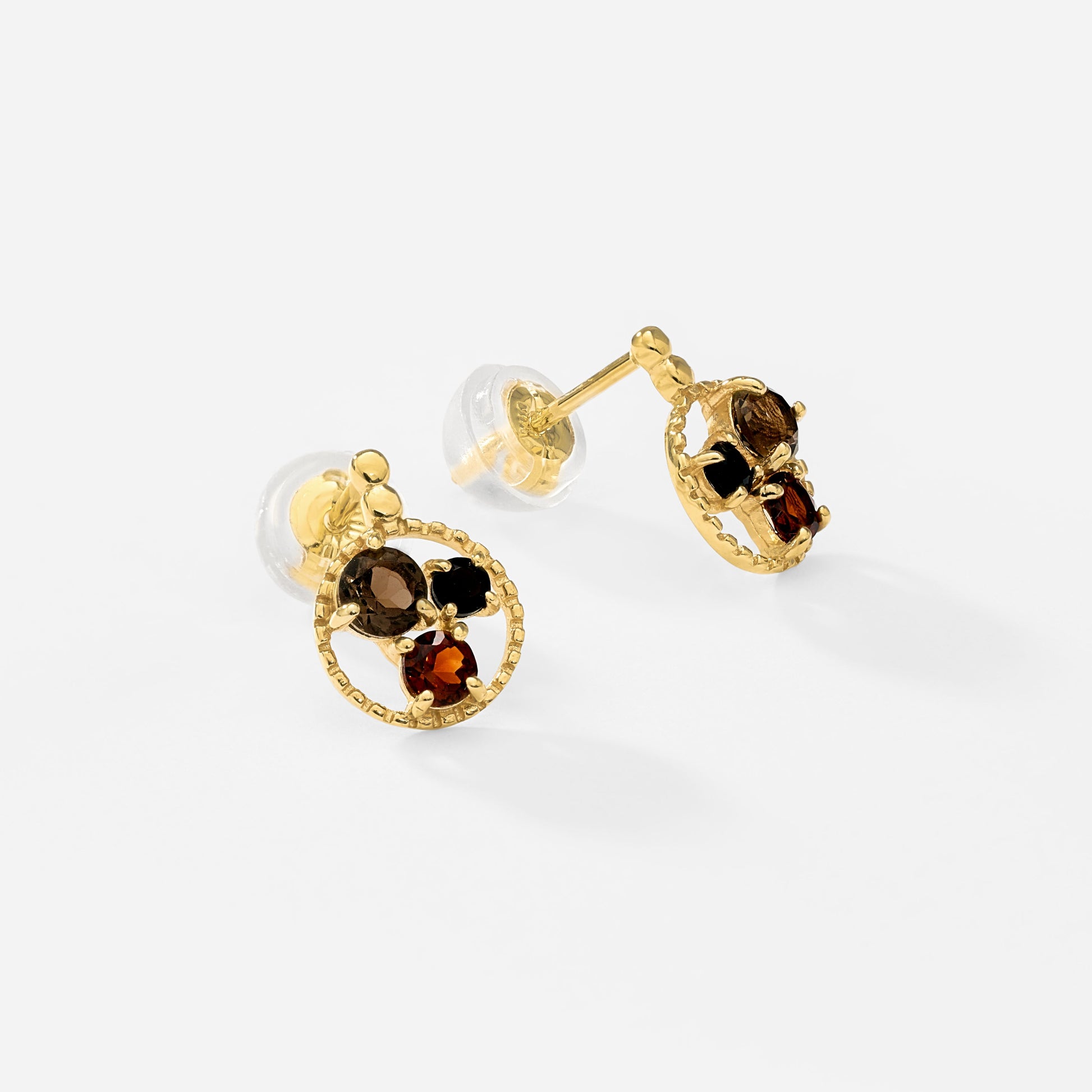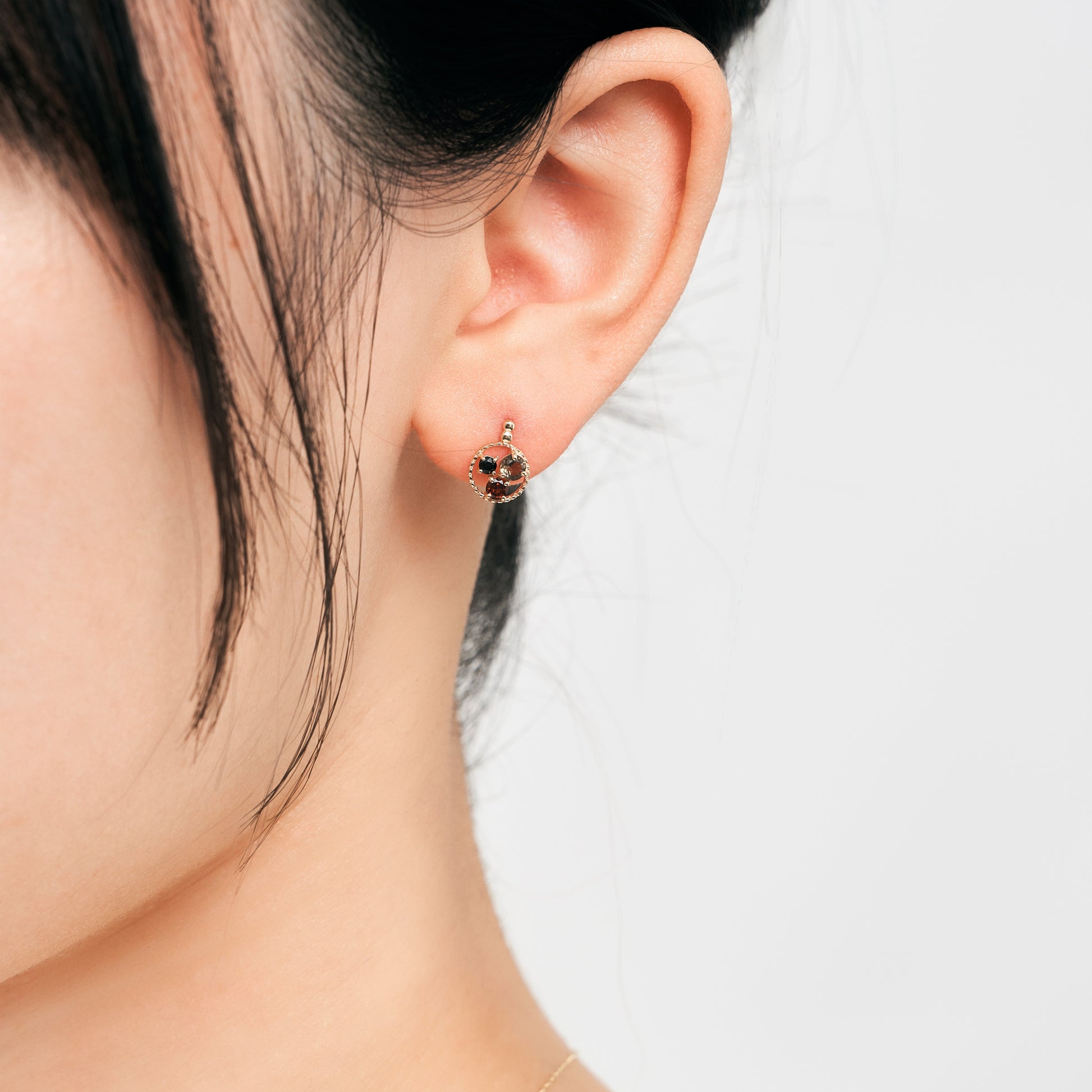 ガーネット・スモーキークォーツ・オニキスを組み合わせた、ホリデームード漂うレッド系クリスマスピアス。
