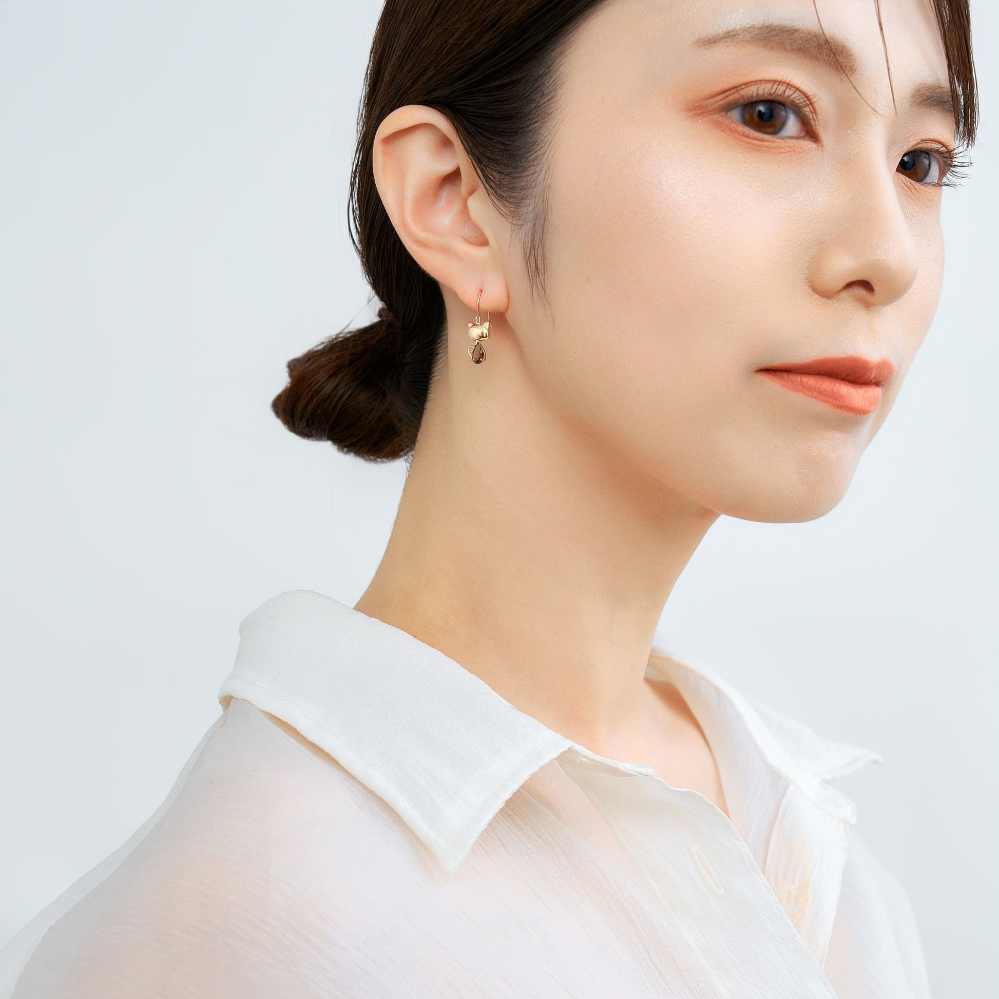 スモーキークォーツがやさしく輝き、耳元に上品なアクセントを添えます。