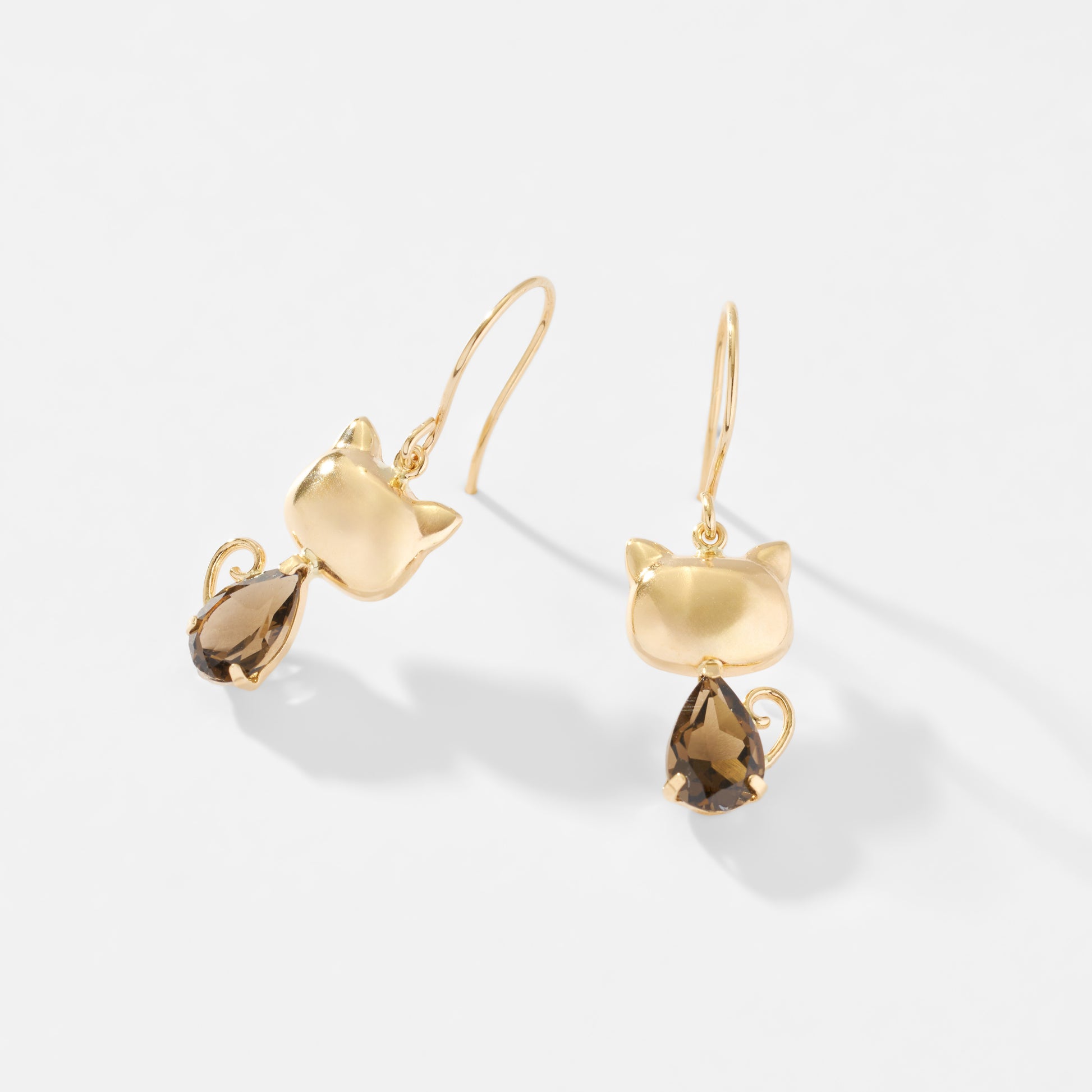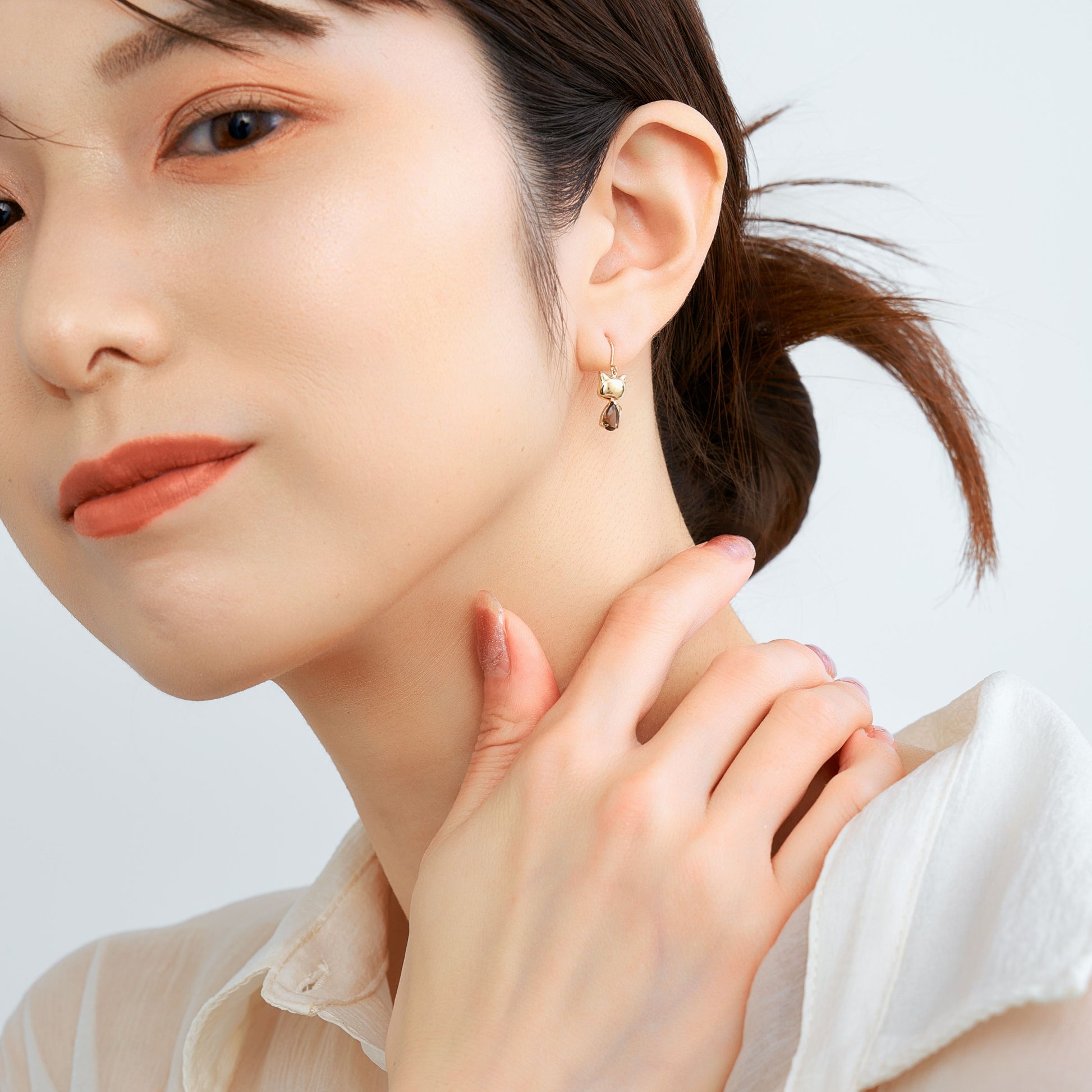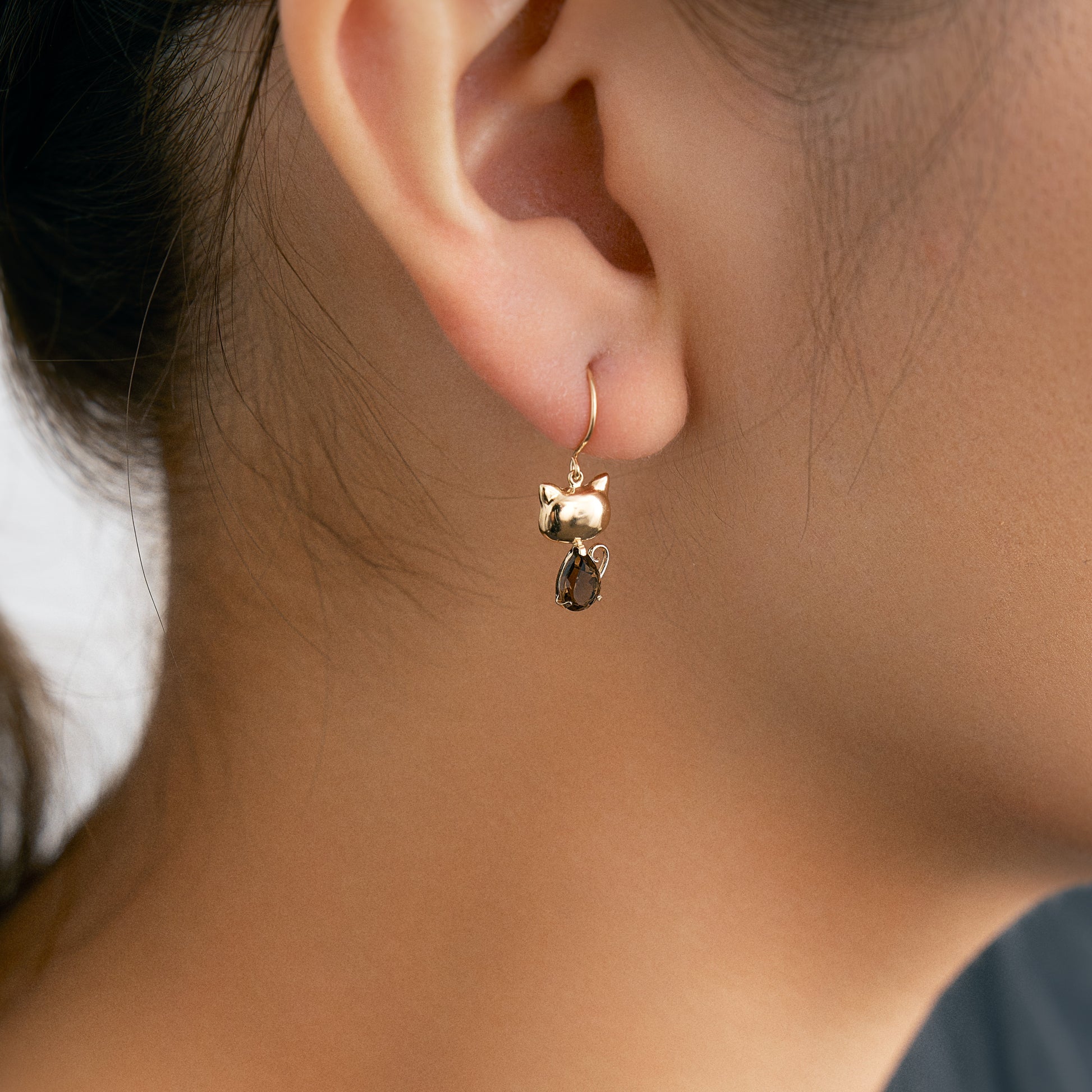 ころんとしたフォルムの猫モチーフが愛らしい、揺れ感が美しいフックピアス。