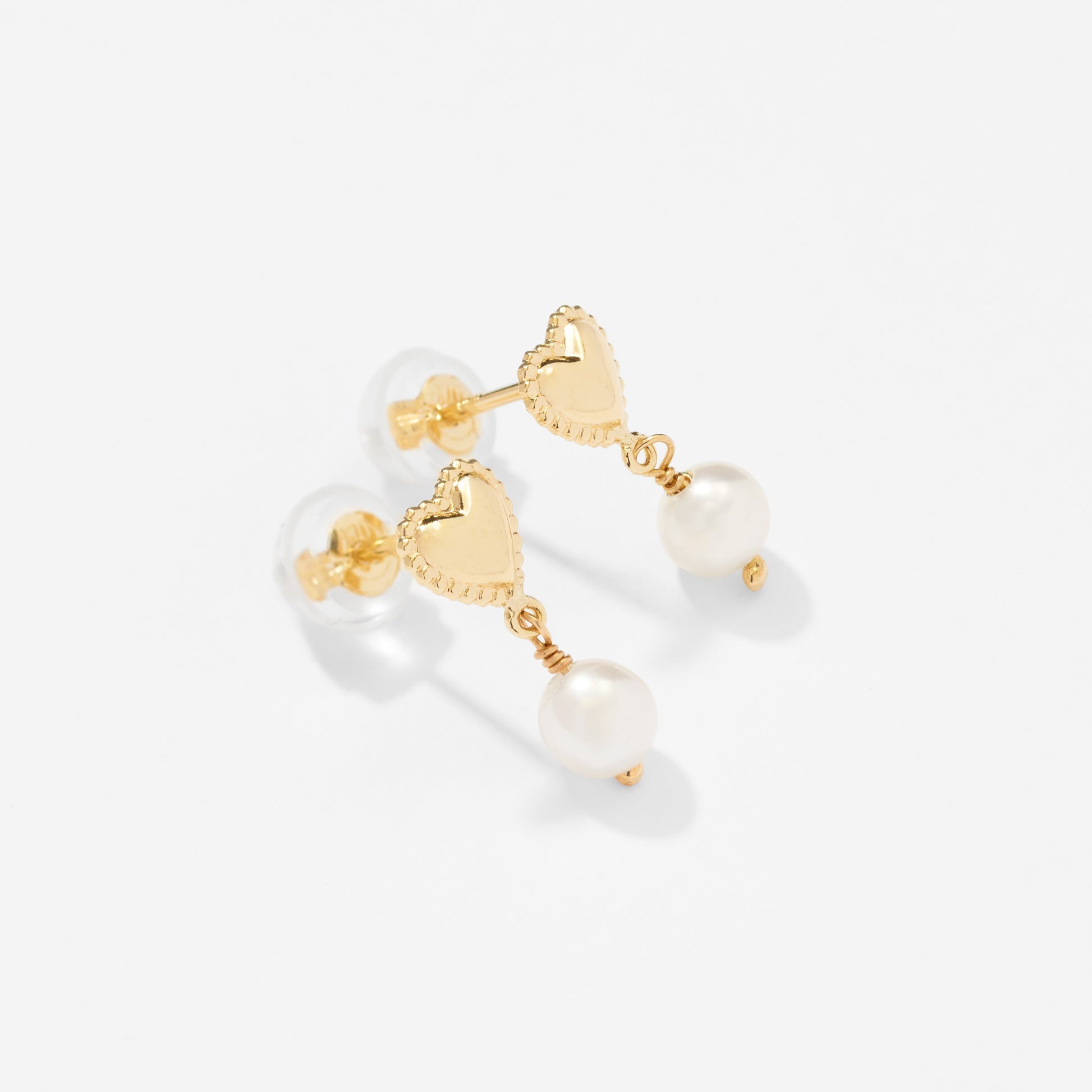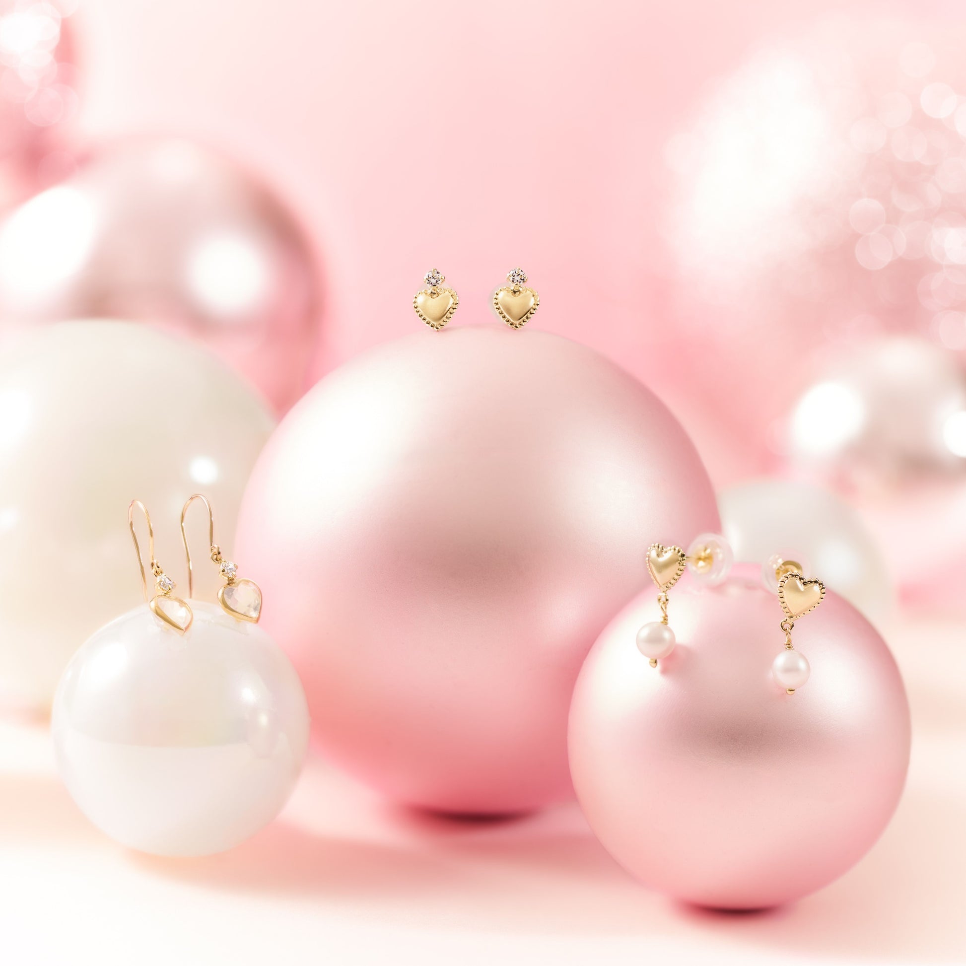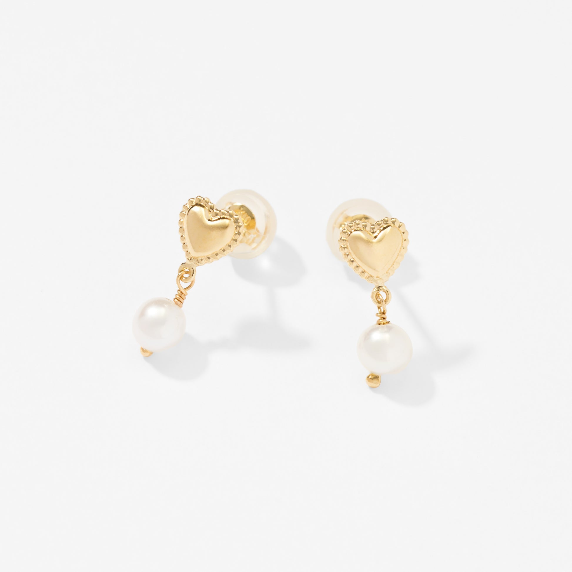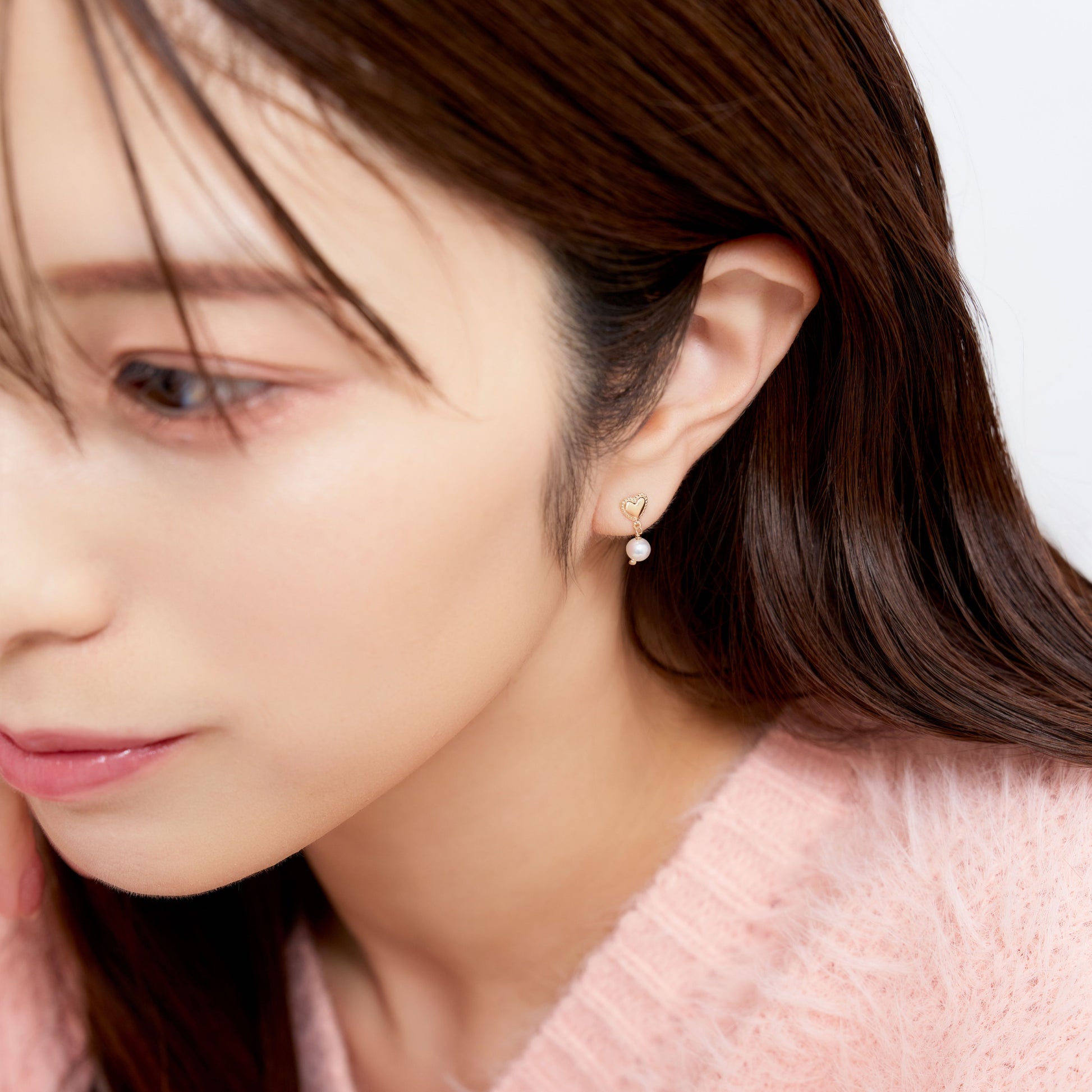 小さなハートモチーフに、ころんと艶めくパールを添えた愛らしいピアス。