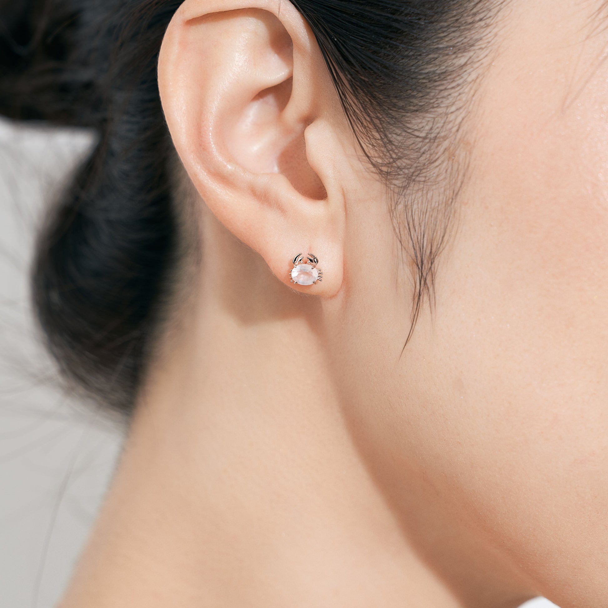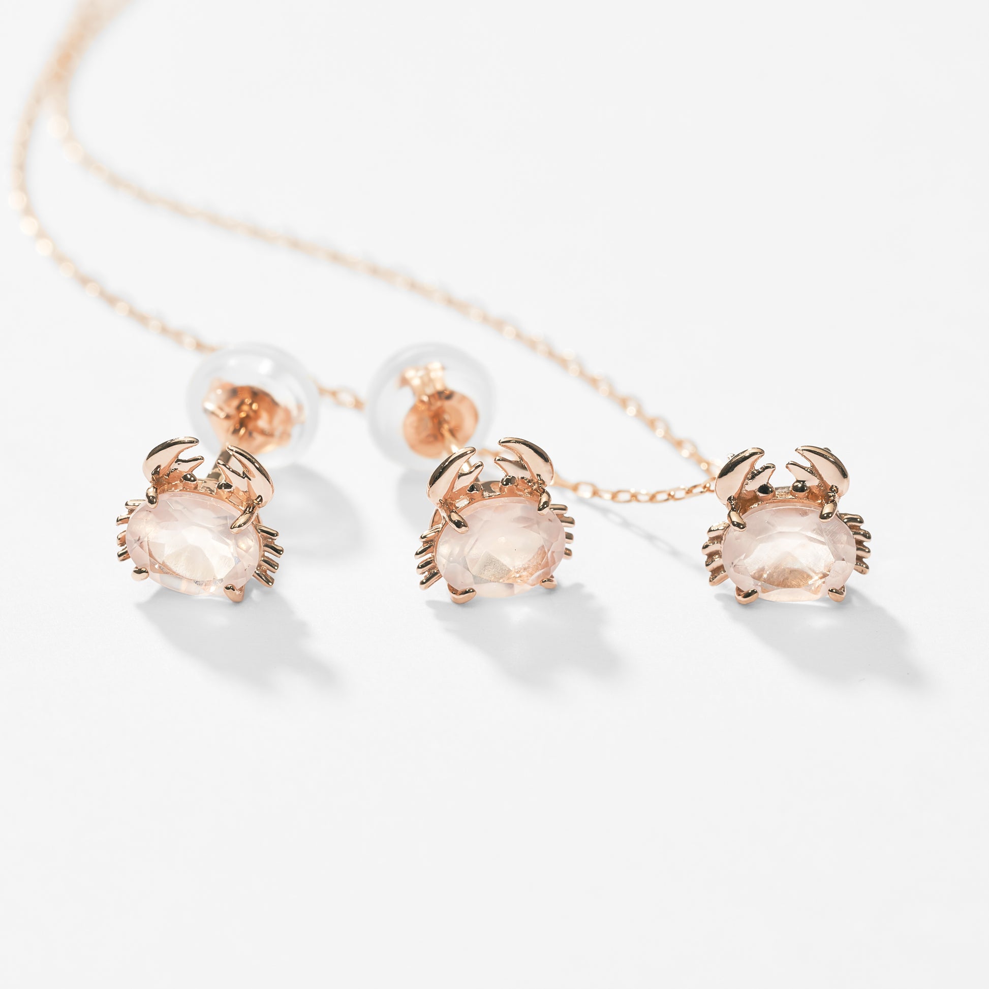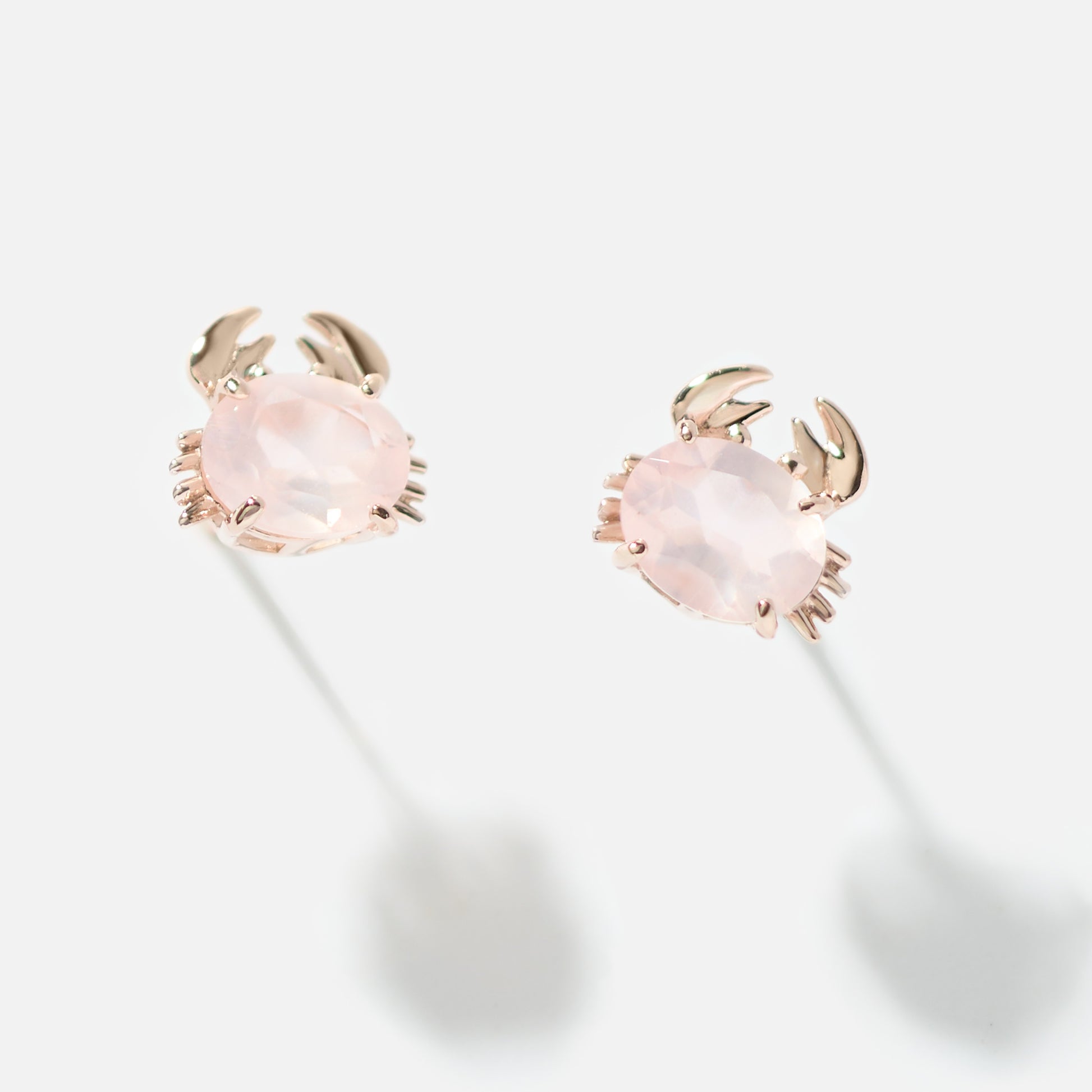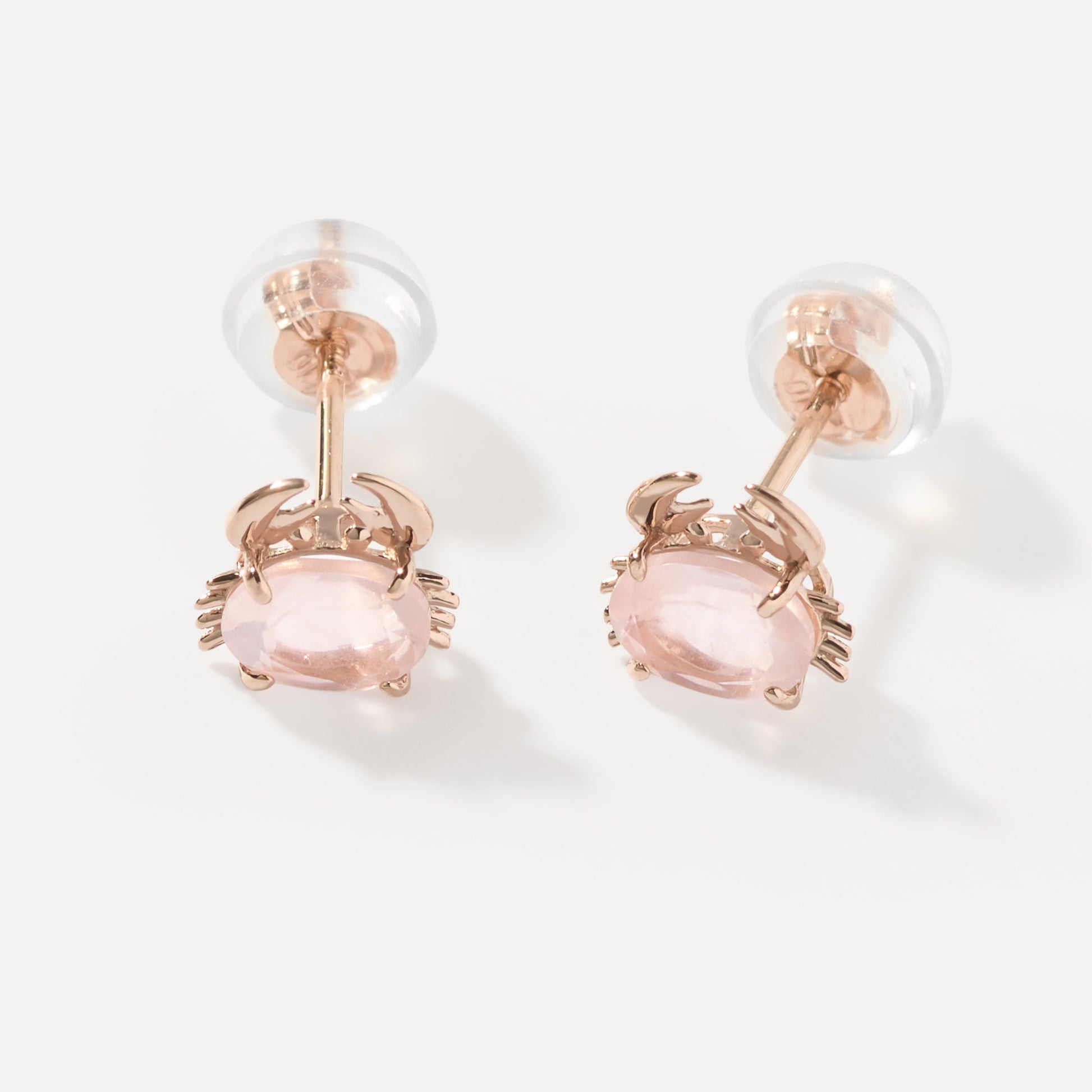 ぱっと見た感じはシンプルなローズクォーツのピアスに見え、よく見ると「あれ?もしかして…カニ…?」と見た人との会話が弾むこと間違いなし!