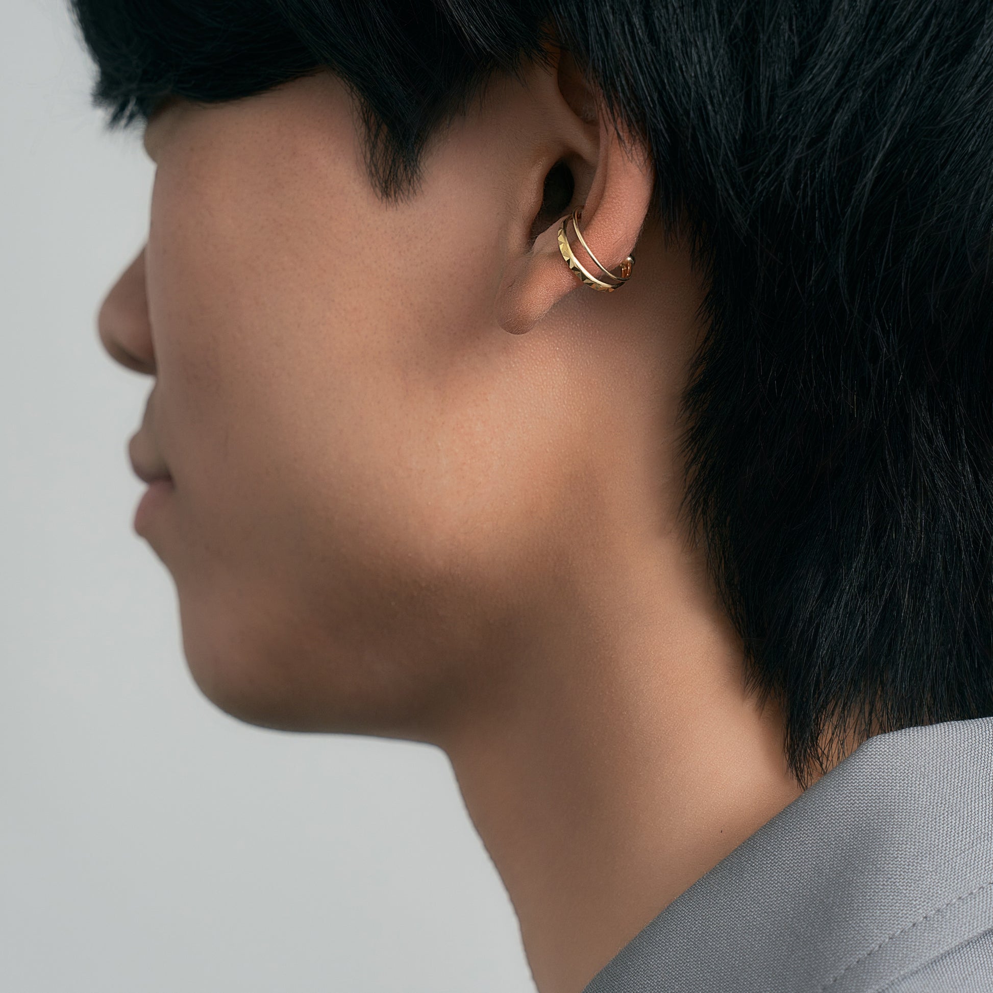 繊細なラインと立体的なカットが光を受けて美しく輝く、K10イエローゴールドのイヤーカフ。丸みのあるフォルムに凛としたテクスチャーを施し、シンプルながらも存在感のあるデザインに仕上げました。