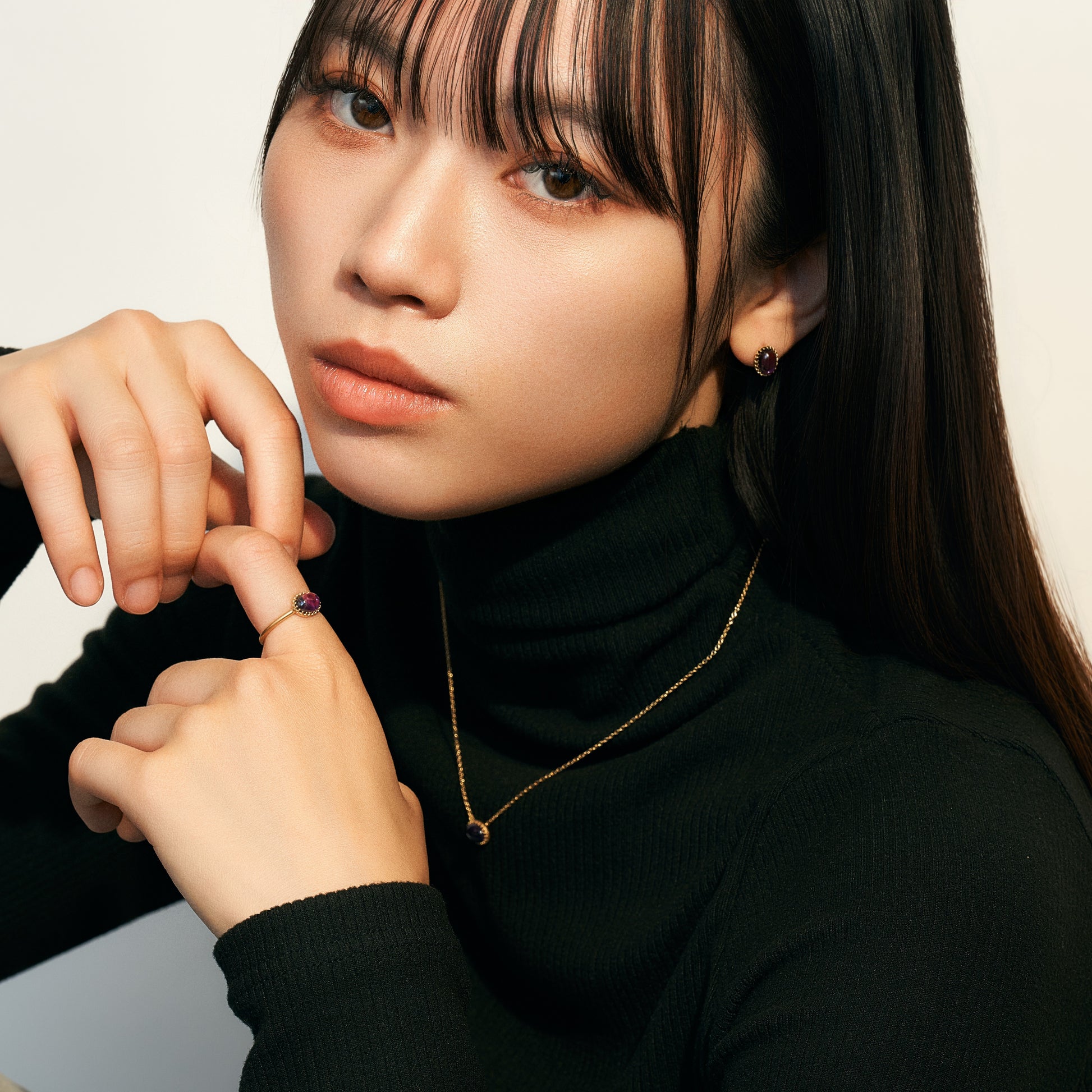 艶消し加工を施したマットな地金が、アメジストの澄んだ色合いを際立たせ、秋のシックなスタイルを一層引き締めてくれます。