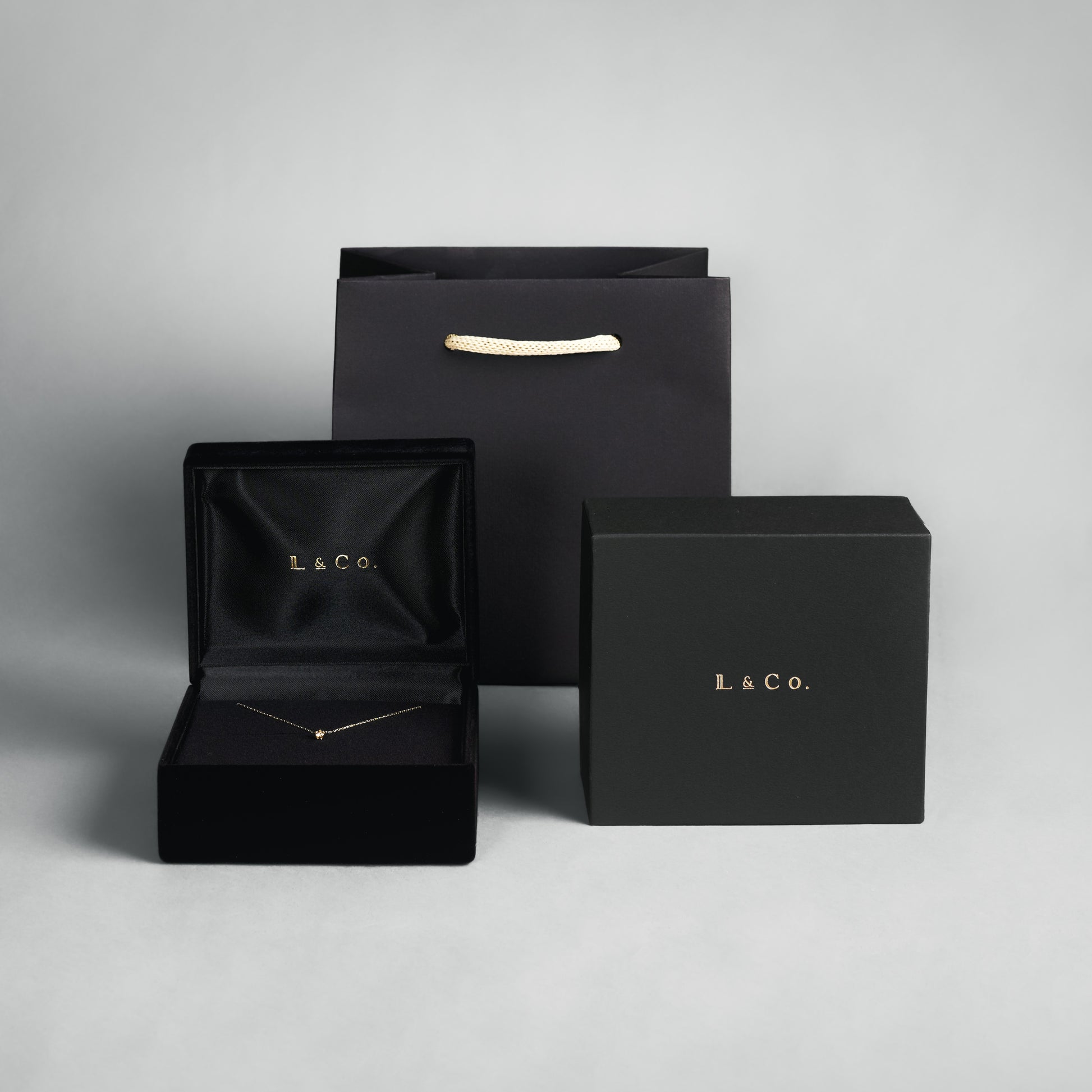 ギフトにぴったりなL&Co.ロゴ入りオリジナルジュエリーボックスです。